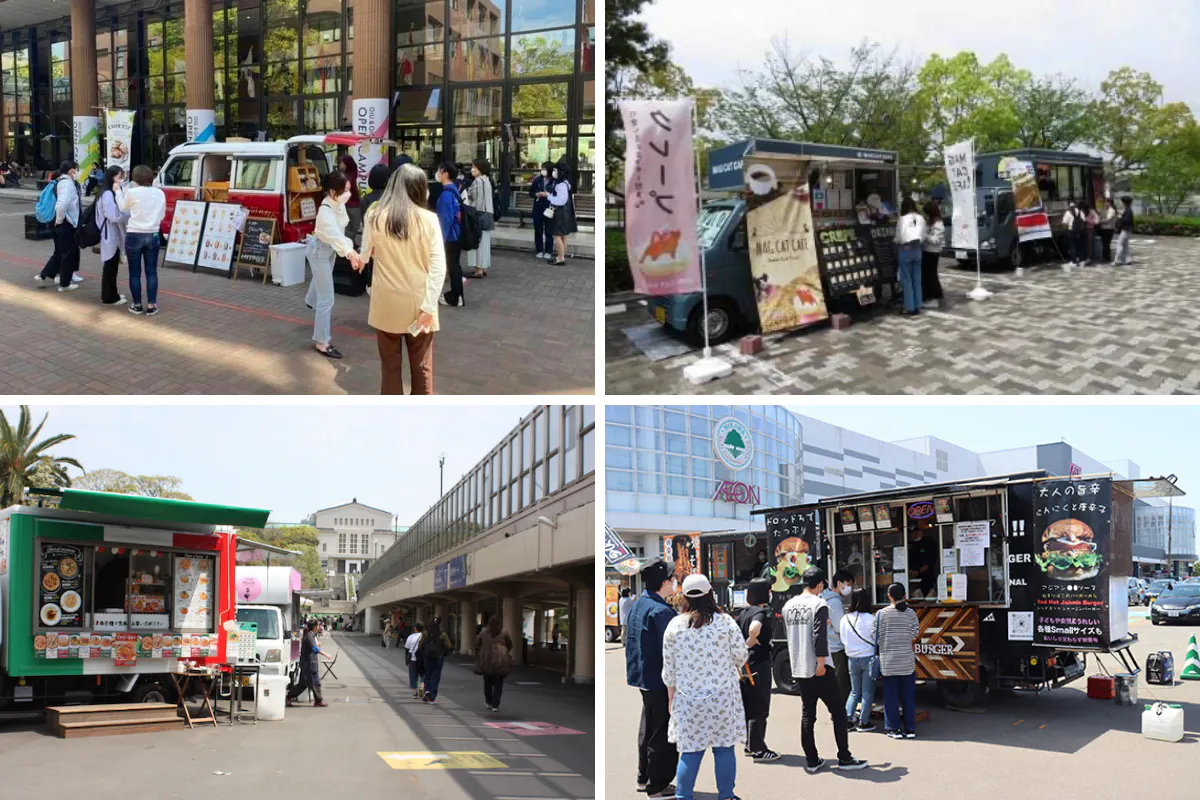 イベント会場から大学、大手商業施設、イベント、常設出店、単発出店など選べる形で移動販売が可能。