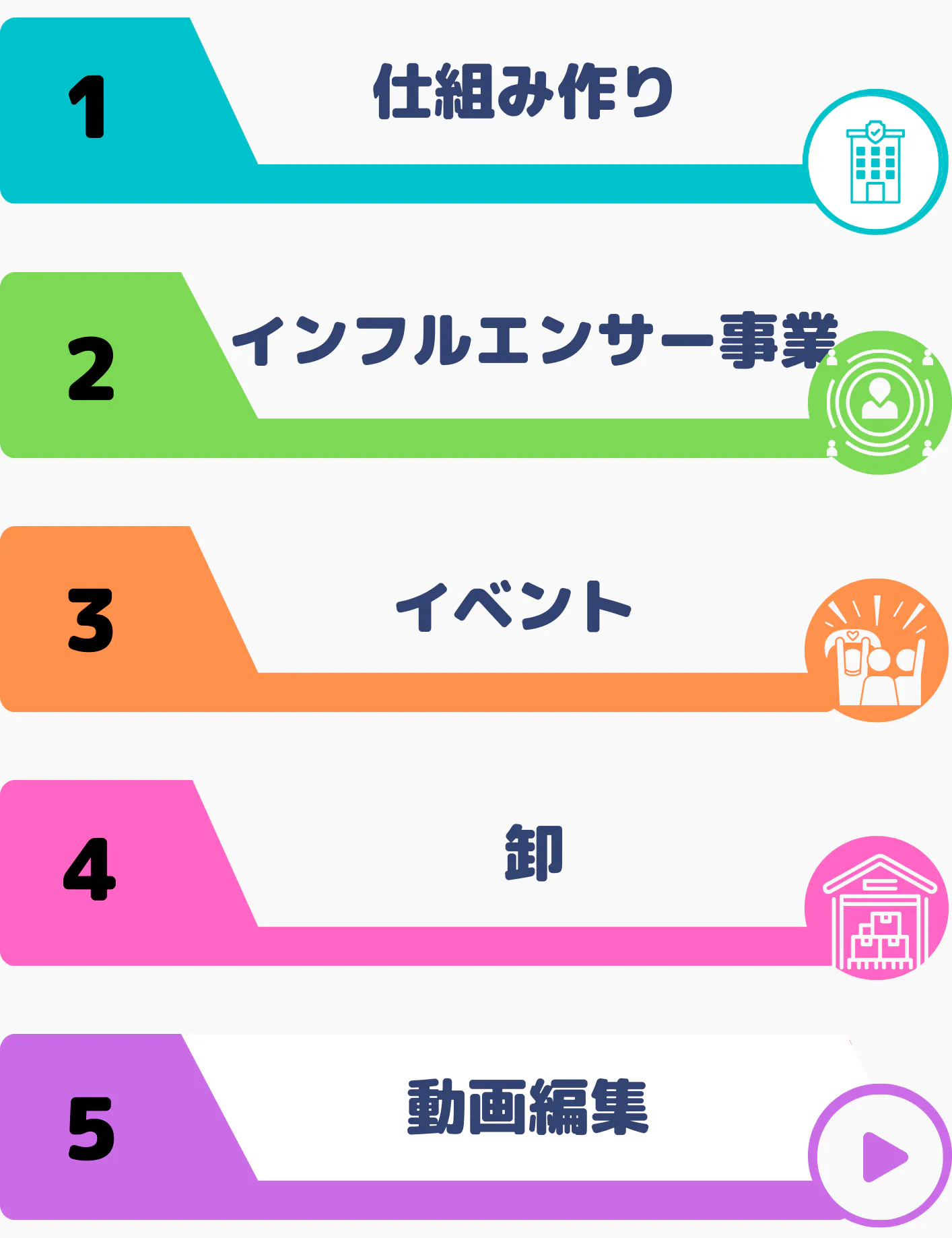 大きく分けると次の9つの軸において、全ての企業様・業者様を手厚くサポートするビジネモデルを展開しています。