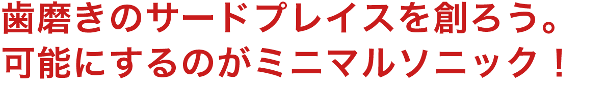 私達は日本の電動歯ブラシ普及率22%をなんとかしたいと考え、ミニマルソニックを誕生させました。口腔内のケアは大変重要なものであるにも関わらず、そのツールの進歩はまだまだです。ミニマルソニックが少しでも日本の電動歯ブラシ普及のきっかけになれば大変嬉しいです。