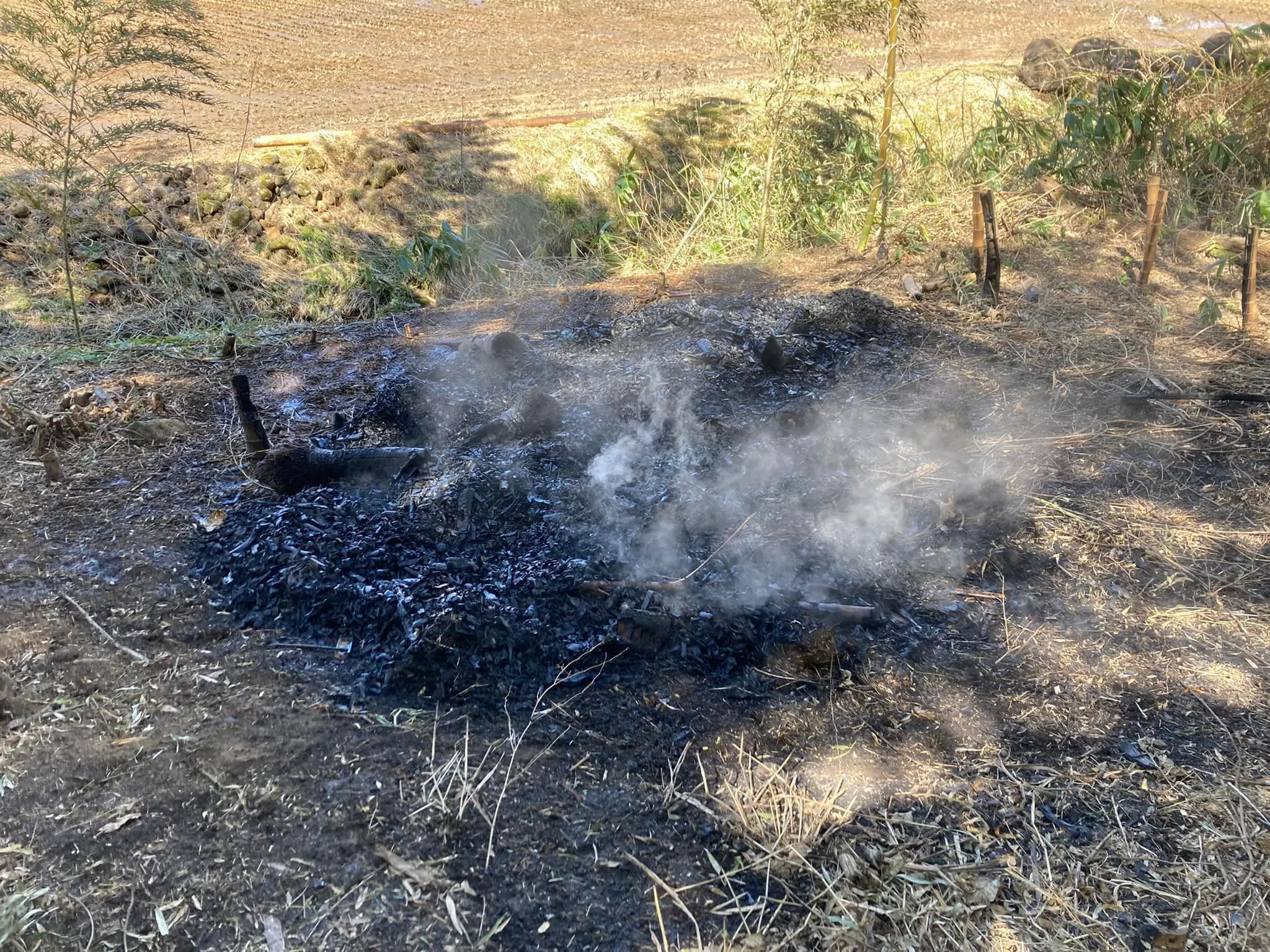 そんな放棄竹林をなんとか整備するため、これまでは倒れた竹を集めて燃やして竹炭を作って、農業用資材として使用していました(畑の土の中に混ぜ込むと、土中の微生物や菌類の住処となり土壌中の環境を良くします)。
