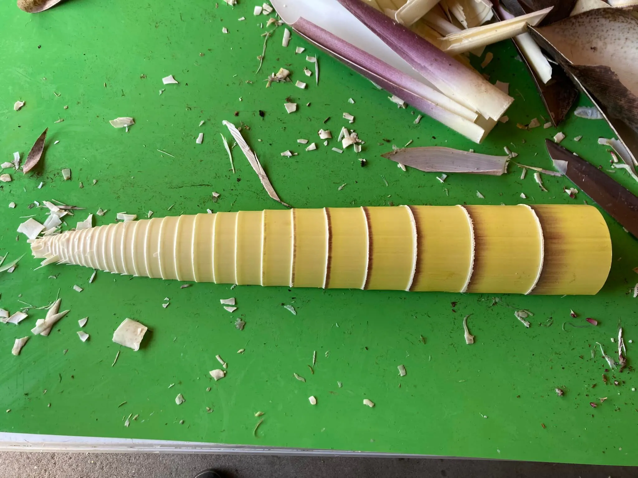 他にも生えてくる竹を有効に活用し、また管理していく方法として、竹チップを作るだけではなく竹になる前の幼竹(1m~1.5m)を刈り取りメンマに加工します。
