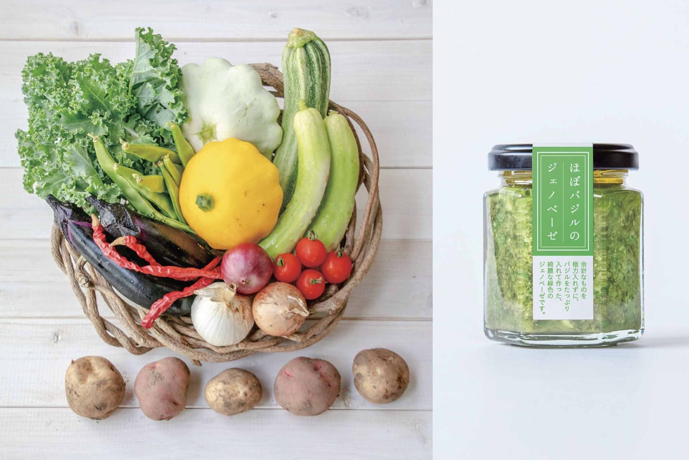 まえむき。の自然栽培野菜5種の詰め合わせセットとジェノベーゼを2瓶合わせてお入れいたします。畑と相談してそのとき美味しいお野菜をお送りさせていただきます。大変申し訳ありませんが、お野菜の内容はご指定いただけません。ご了承ください。