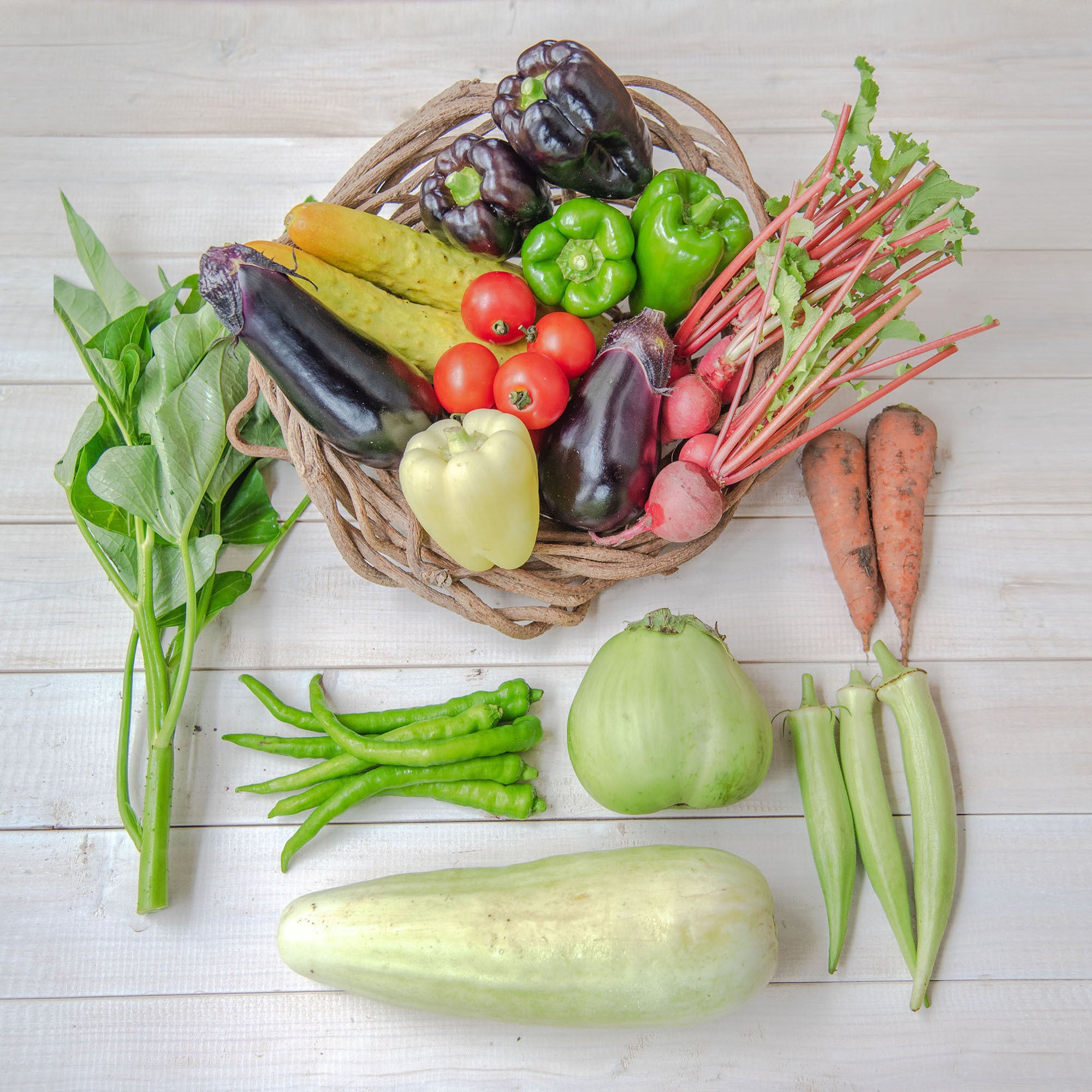 まえむき。の自然栽培野菜8種の詰め合わせセットです。畑と相談してそのとき美味しいお野菜をお送りさせていただきます。大変申し訳ありませんが、お野菜の内容はご指定いただけません。ご了承ください。