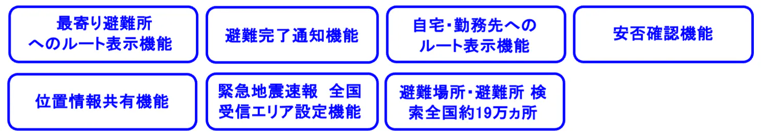 - ④最寄り避難所へのルート表示機能