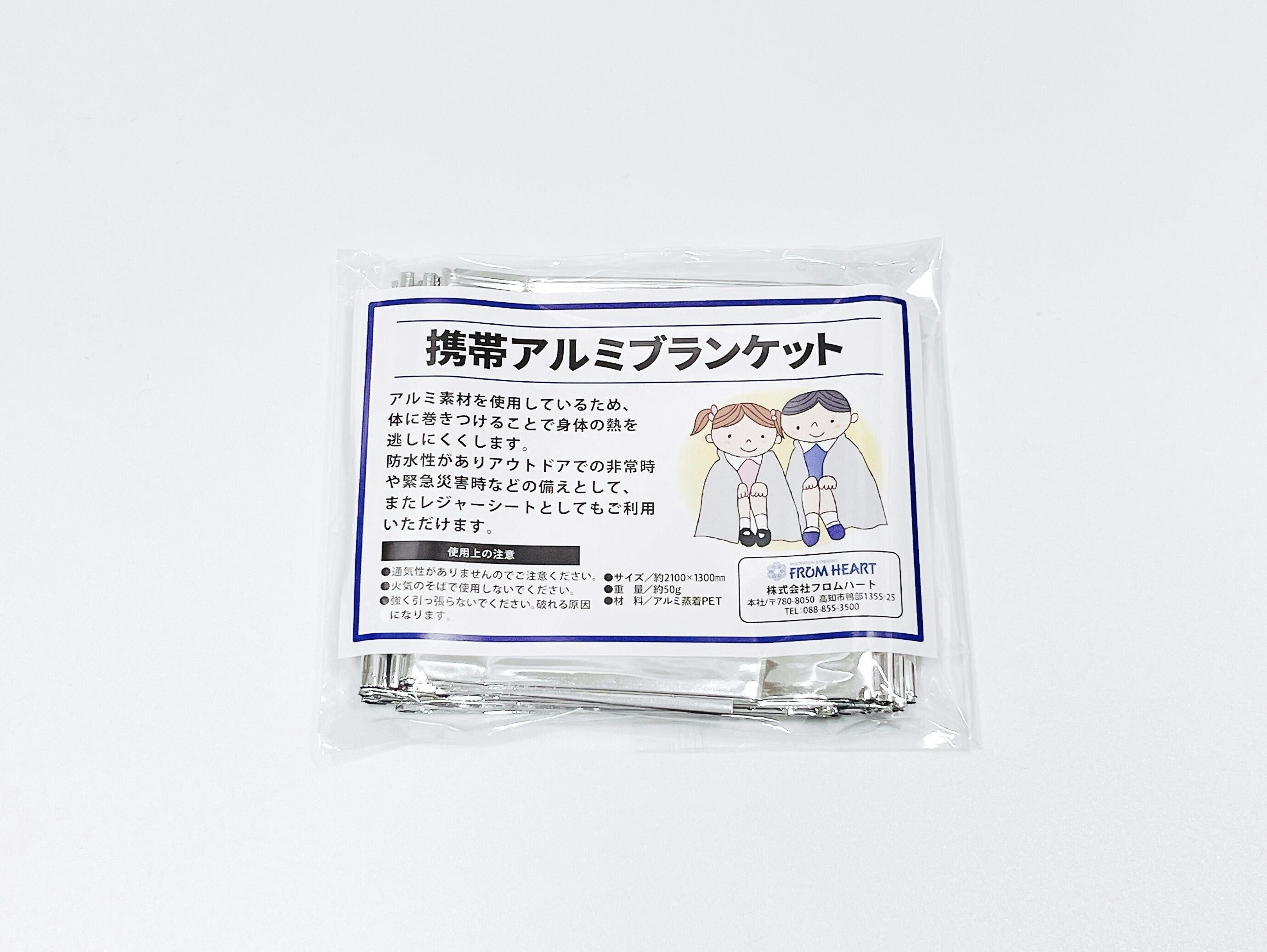 ①お礼カード(QR コード付)+みらい共助メンバー利用料 2 ヵ月無料 +アルミブランケット 1枚