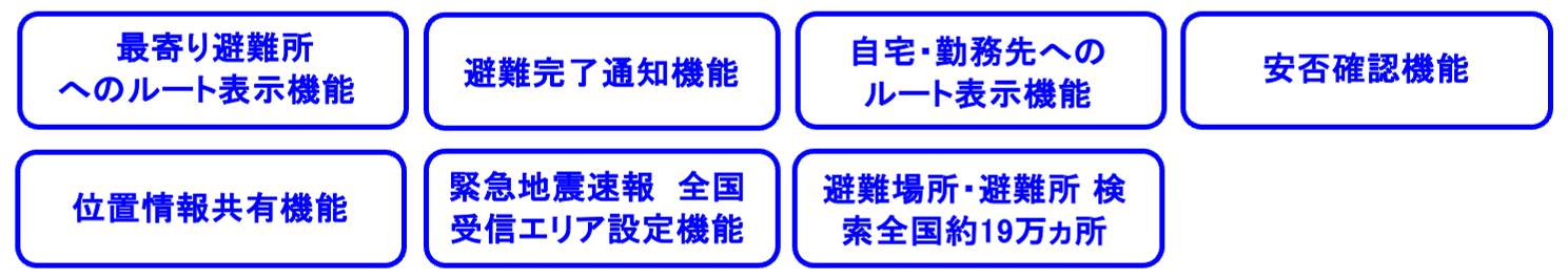 - ①地震発生直後、避難場所への自動ルート表示機能