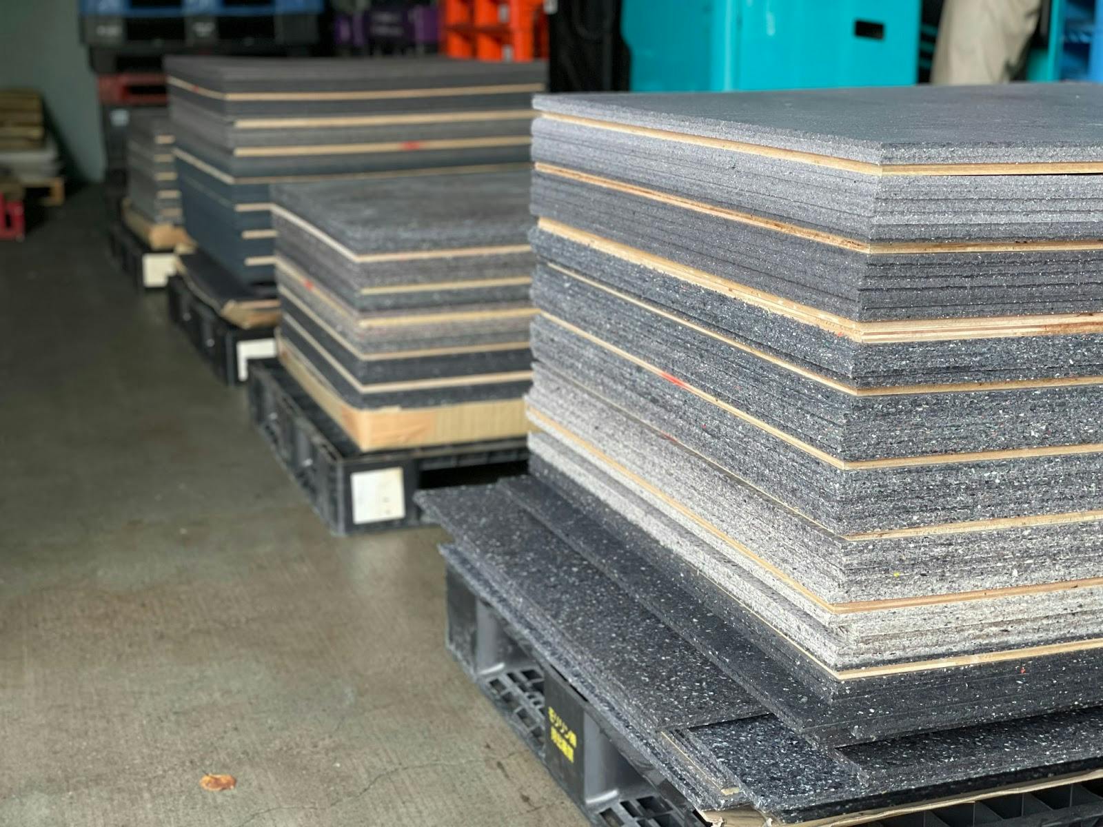 集めた衣類を粉砕してボード上の板材にするため、日本で好まれる落ち着いた色の服を混合して生まれたボードはグレーになります。逆に、カラフルな服を多く集めればカラフルなボードになります。