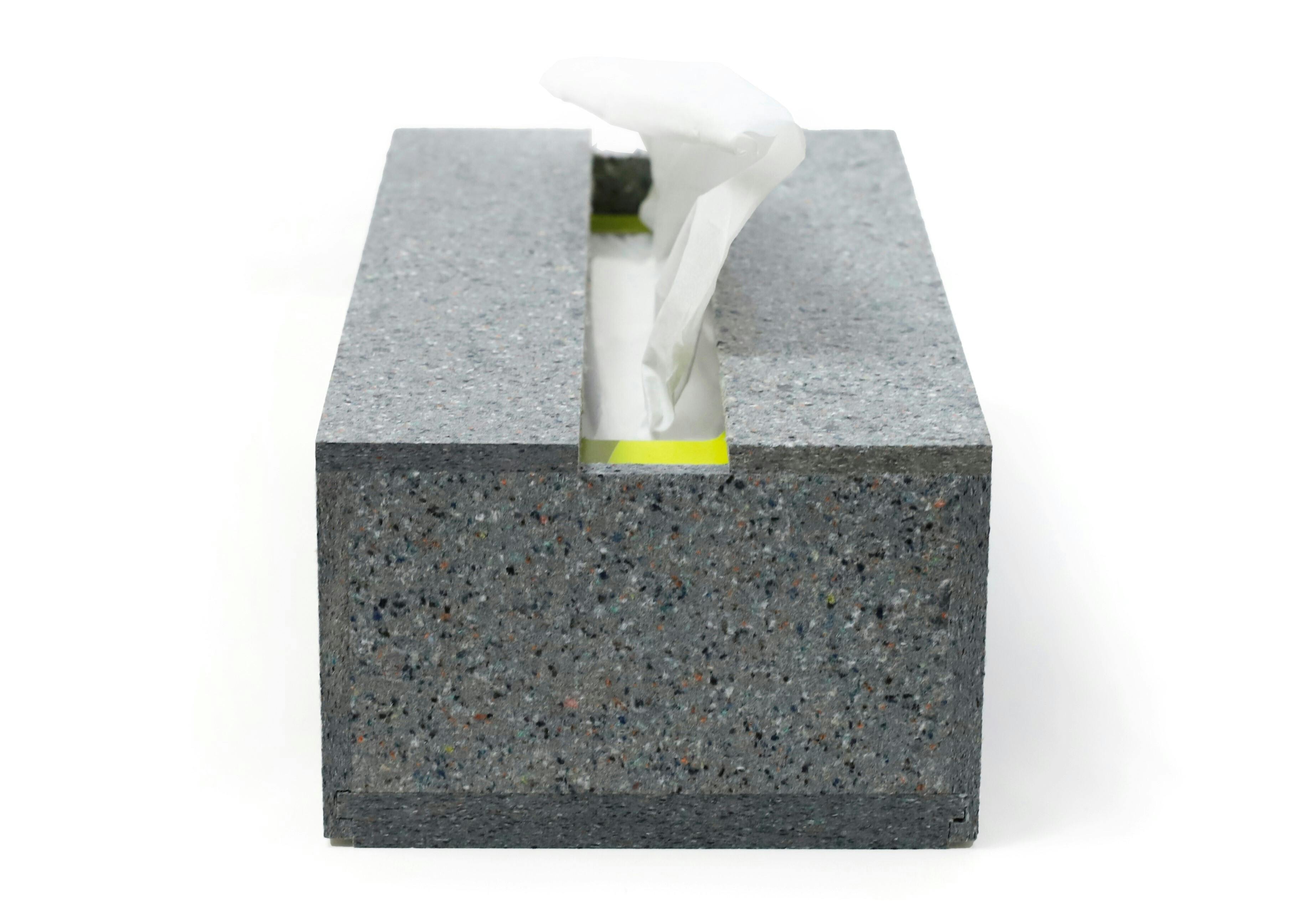 廃棄衣類を90%以上含むことで、木材のような硬さと加工しやすさを両立させました。