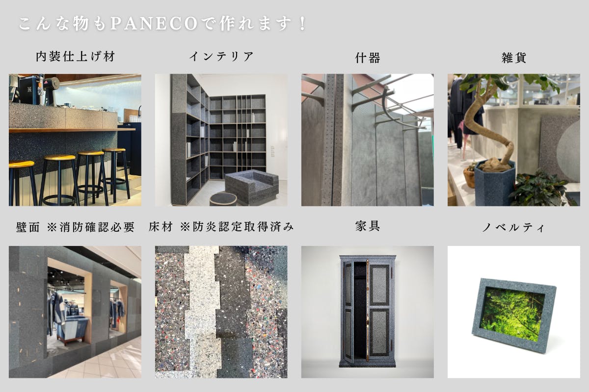 また、使用済みのPANECOや制作時の端材(素地の状態)を100%再リサイクルすることに成功しています。