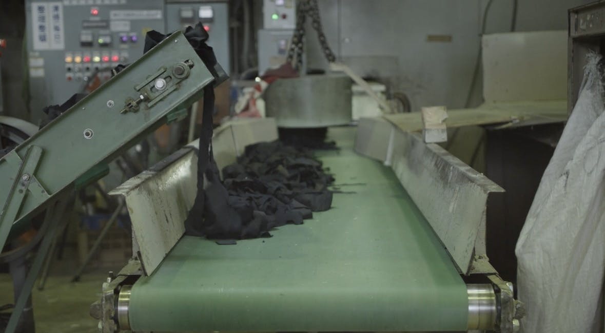 ボタンやファスナーなどの副資材が取り外された衣類は粉砕工場に運ばれ、細かい繊維に加工されます。