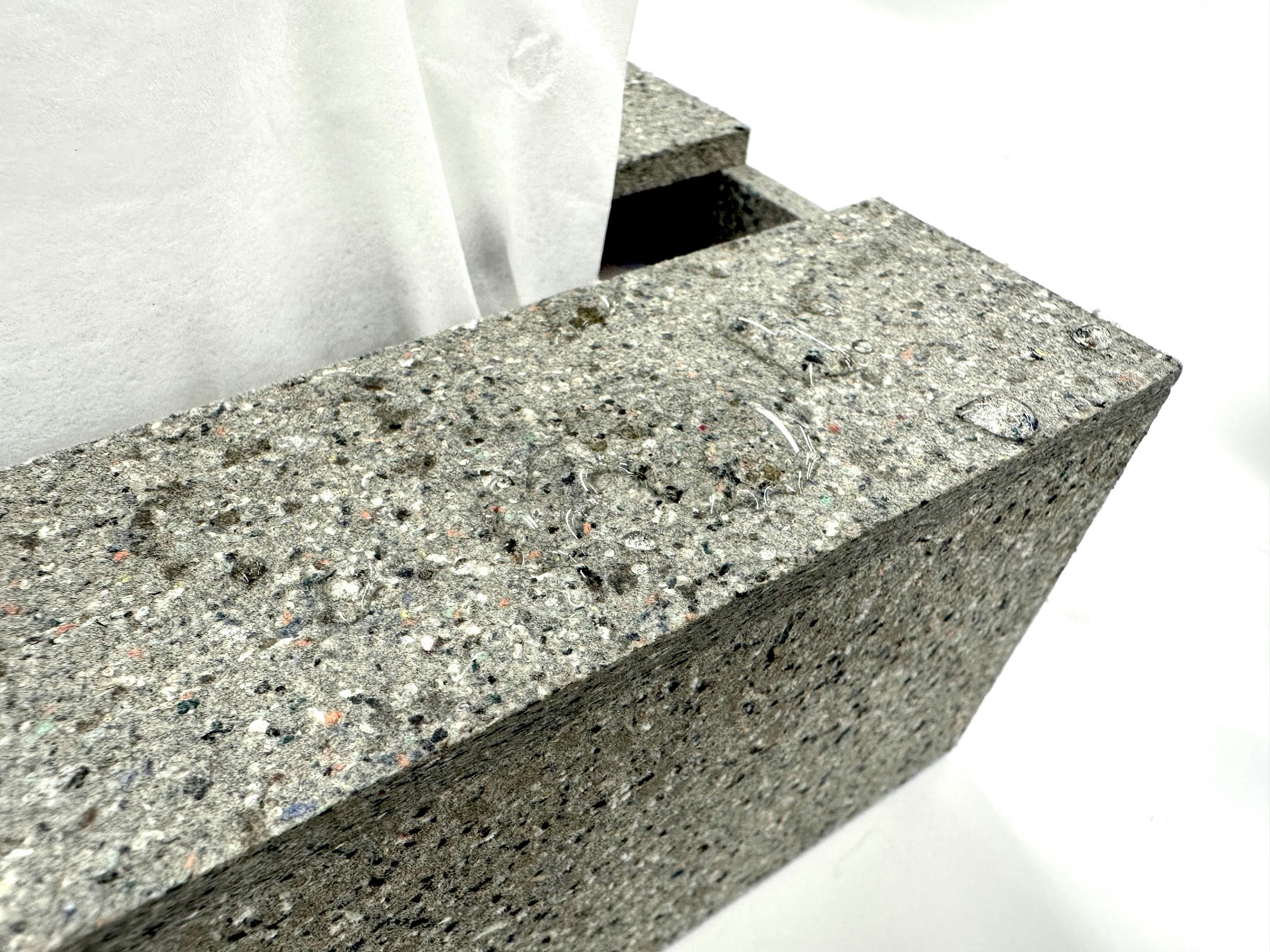 木材とは違い、衣類をアップサイクルすることによってできるまるで生地を触っているかのようなザラっとした手触りなのが特徴です。