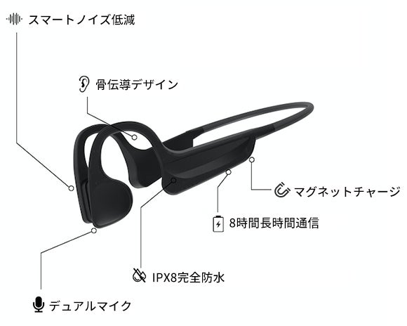 「Sgast」はIPX8の防水性能を搭載しています。ランニングやお散歩の時だけではなく、プールでのスイミング時も音楽を楽しめます。