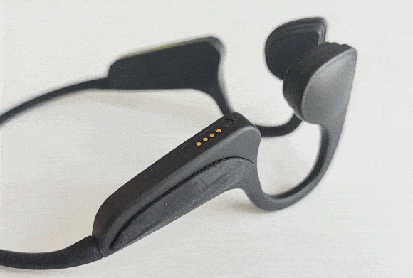 ・骨伝導の耳掛け式、両手が空いた状態で通信可能。