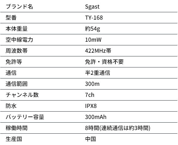 使用前にチームメンバーの「Sgast」 を同じチャンネルに調整するだけで、300 メートル以内で無料通話を実現できます。
