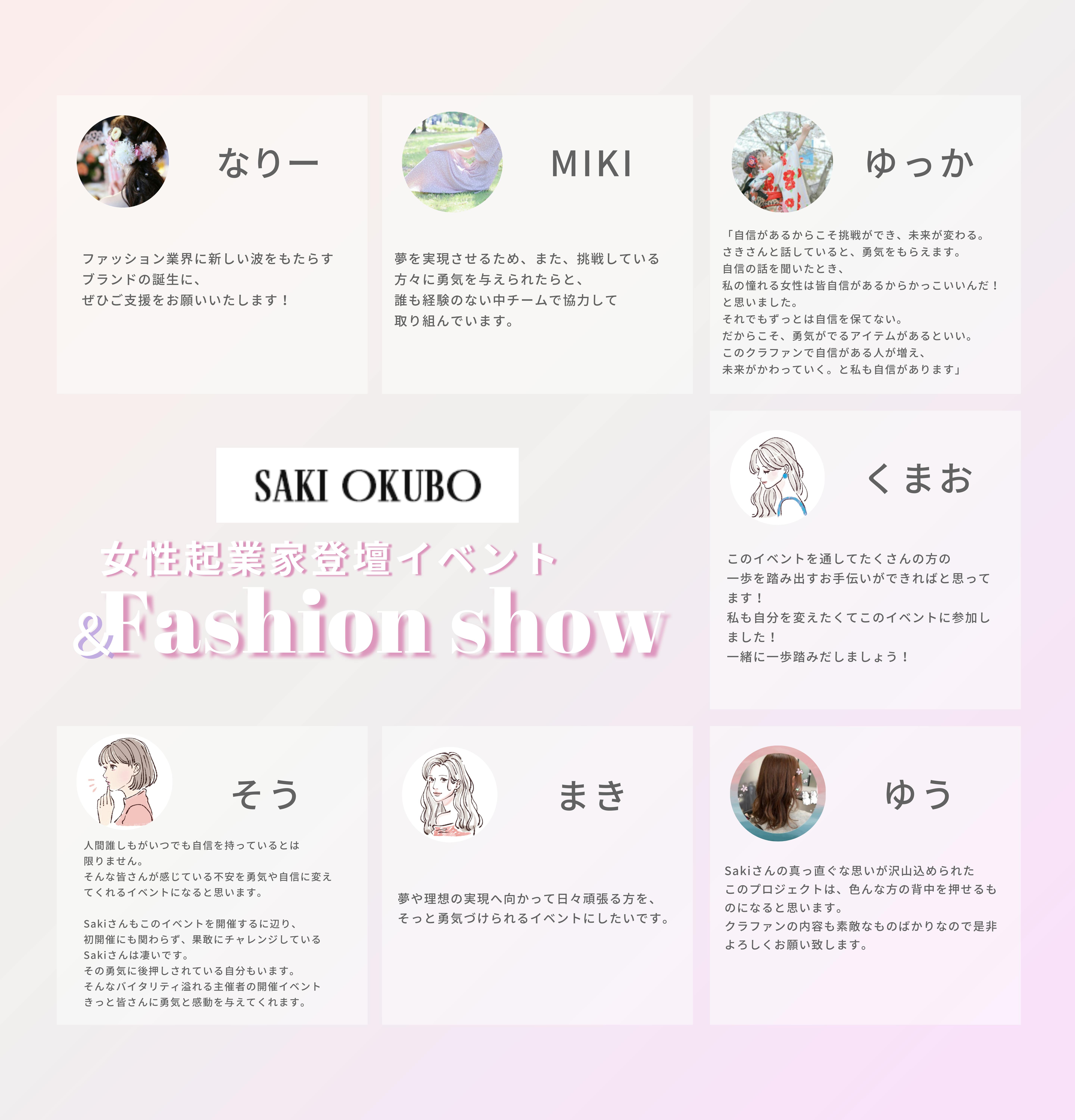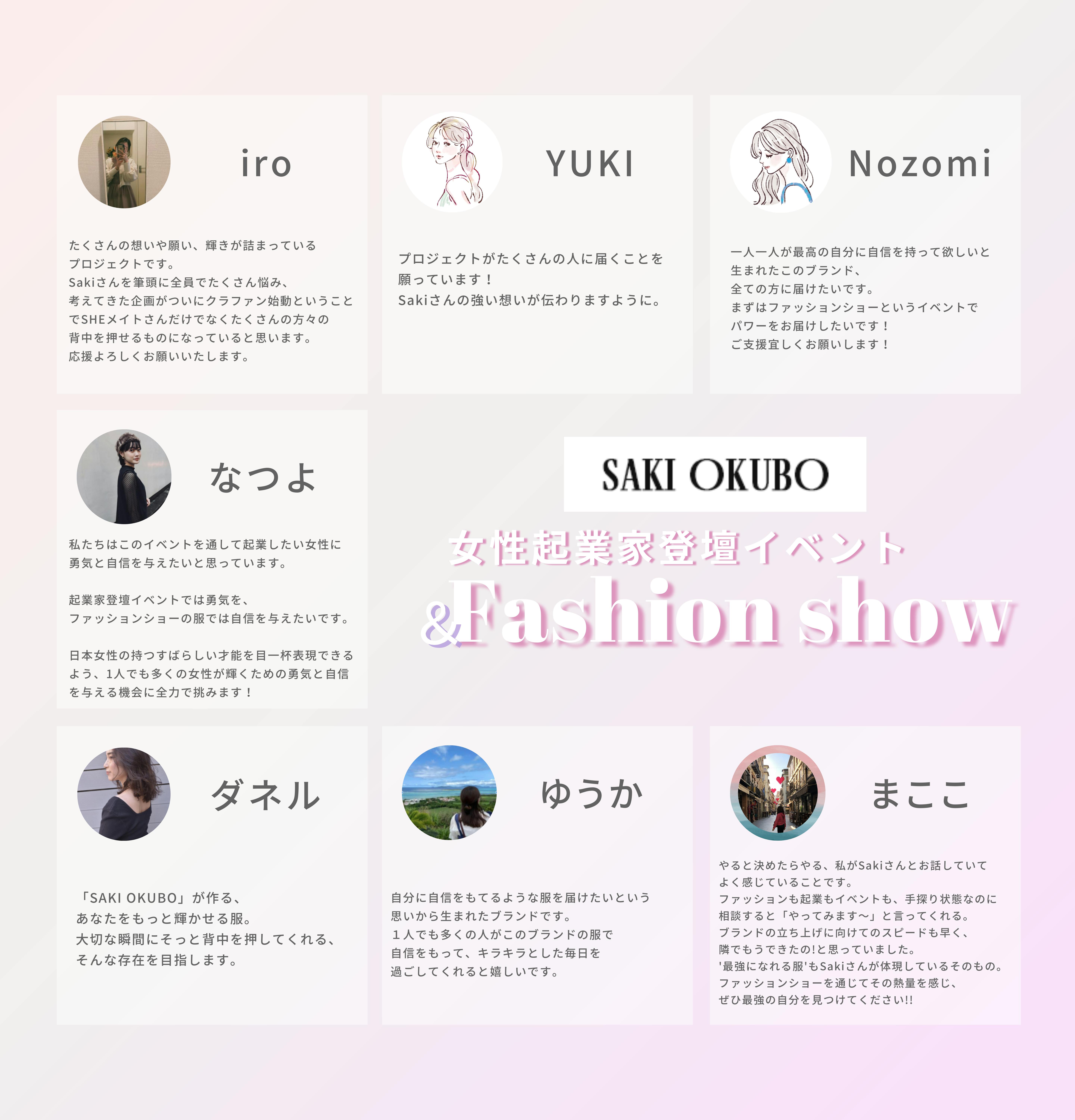 そして当社の願いである 『Make you confident』 を叶える大きな要となるのが、この度開催いたします「ひな女性起業家登壇&SAKI OKUBOファッションショー」なのです。