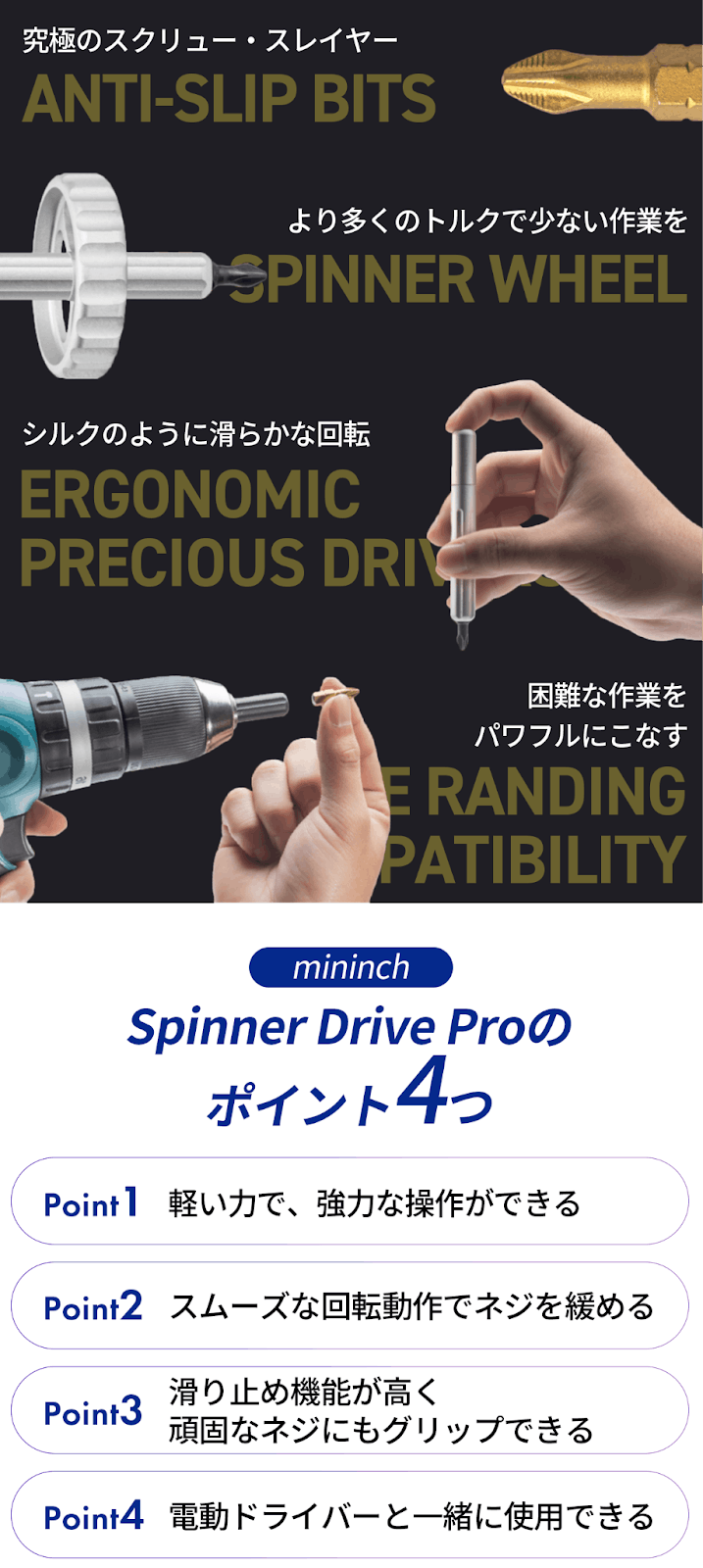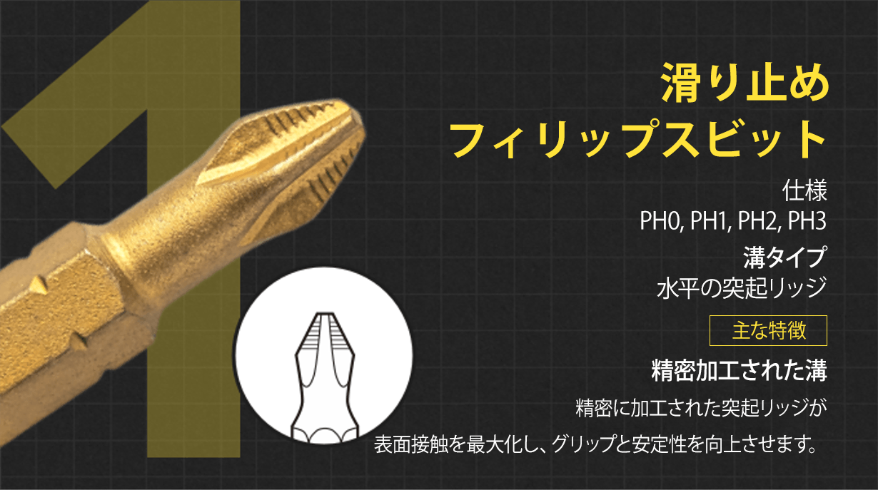【最大のグリップ力を発揮する滑り止めビット】力強さと精度を兼ね備えたドライバー