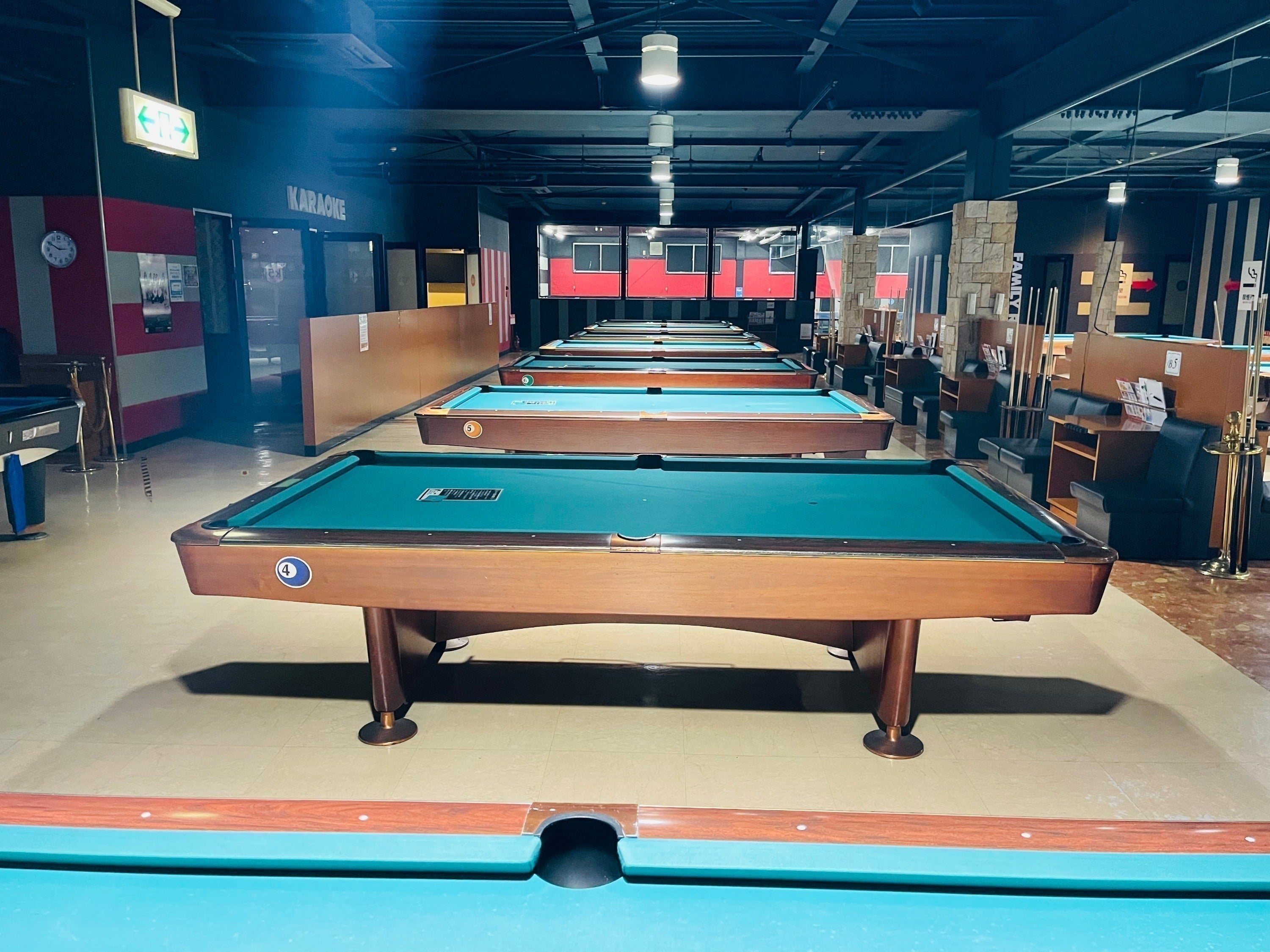 施設内には、個人スペースはもちろん、ビリヤード、ダーツ、スロット、カラオケ、卓球。
