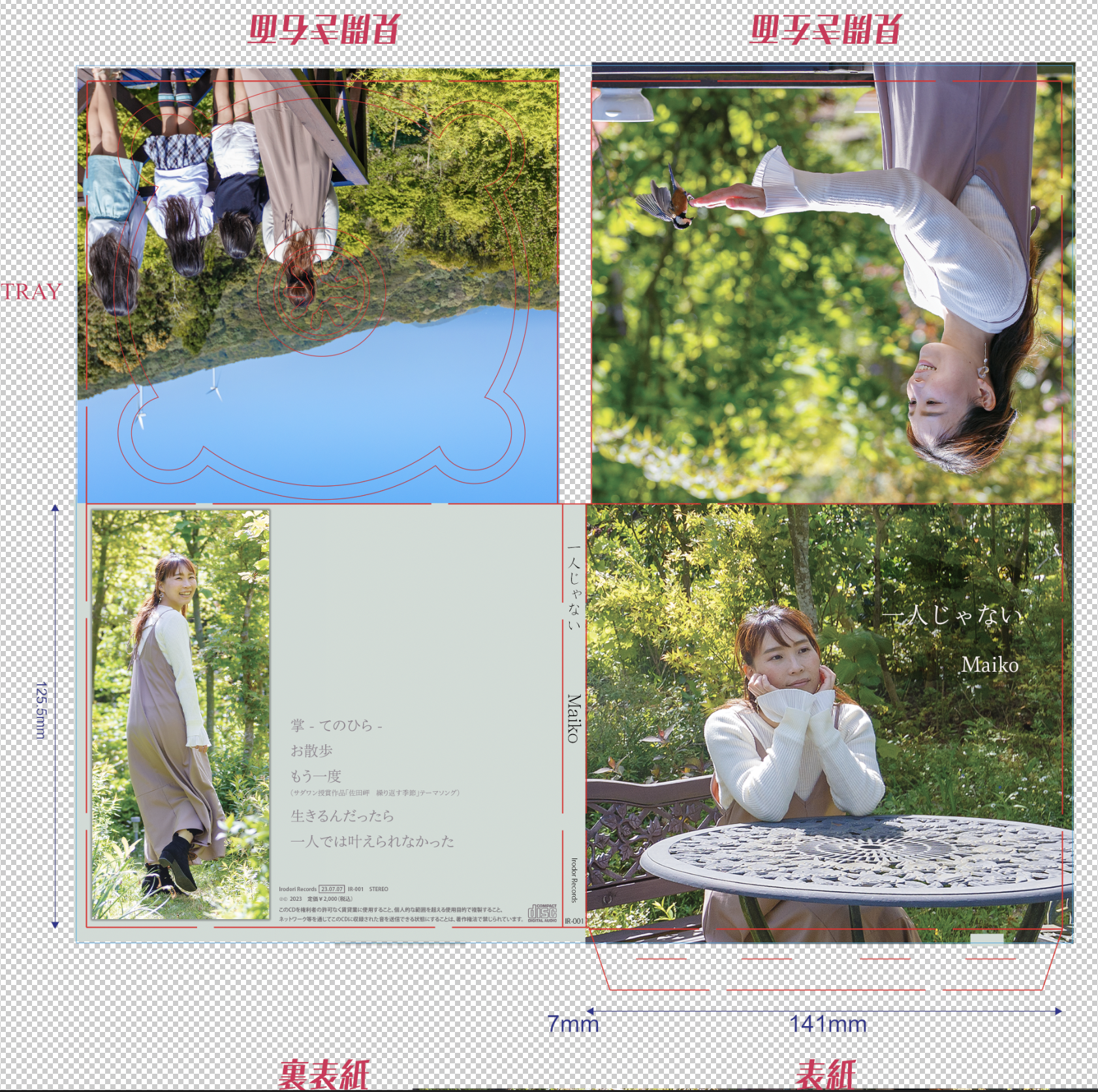 こんにちは~♪みなさまお元気ですか?アルバムジャケットのデザインが仕上がったのでご報告です!紙のアルバムなので、このように開いた状態で印刷します。右下が表紙です!写真撮影は一楽-ichigaku-さん。デザインは、マイケルさんとユキコさん。ありがとうございます!皆様のご協力によりとっても素敵なアルバムができつつあります。あとは音源の完成を待って、プレスするのみです。同時進行で、レコーディング風景動画を作成中です。修一さんが、撮影編集をしてくださっています!こちらはリターンで出していた商品ですが、一般販売もします。東京での様子だけでなく、私が音楽を始めたきっかけになる友達との対談や、「もう一度」の曲をご依頼くださったSin-neoさん、歌詞を書いてくださった四つ葉さんとも対談しています。↓↓↓Sin-neoさんの作品が授賞しました!その動画のテーマソングに使っていただいています!また、「一人では叶えられなかった」をPV風にして伊方町の海で撮影したものも収録しています。風がものすごくて、おでこ全開に加え、着ていたワンピースの下から風が入ってドラえもんのようにぷっくりしています(笑)どうぞご期待ください・・。ではまた!!
