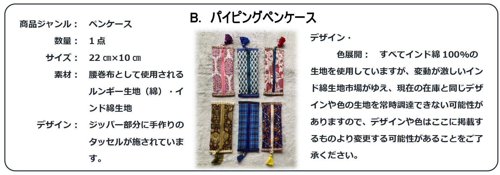 ③農村女性縫製団体(AVS)商品パイピング・ペンケース(以下参照)