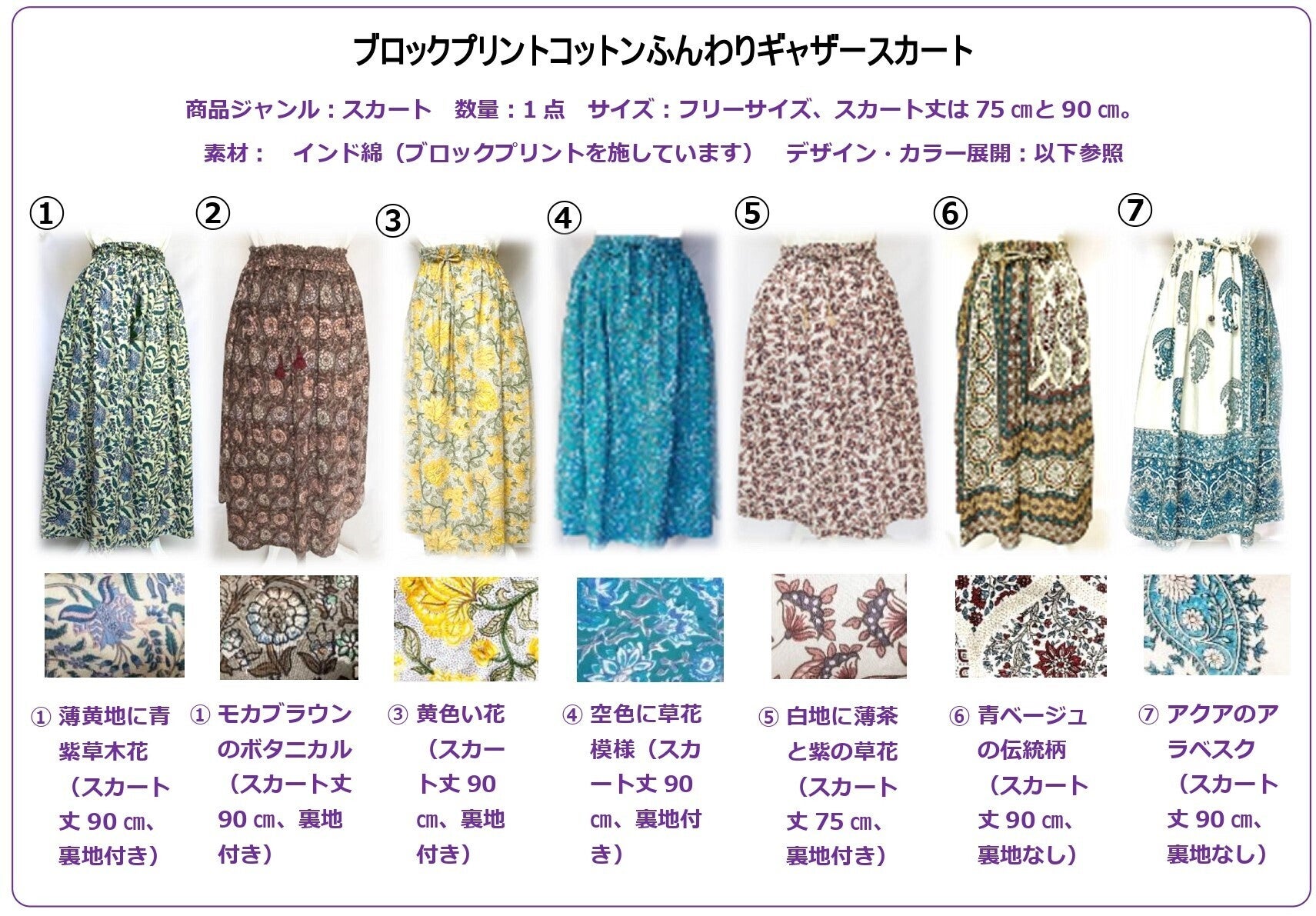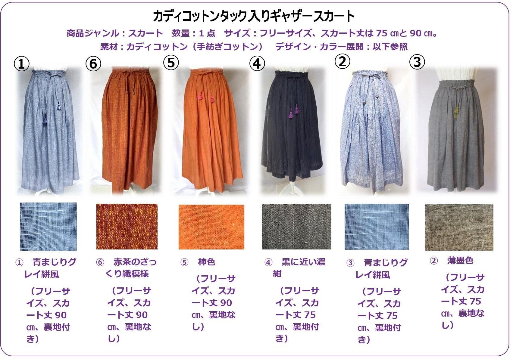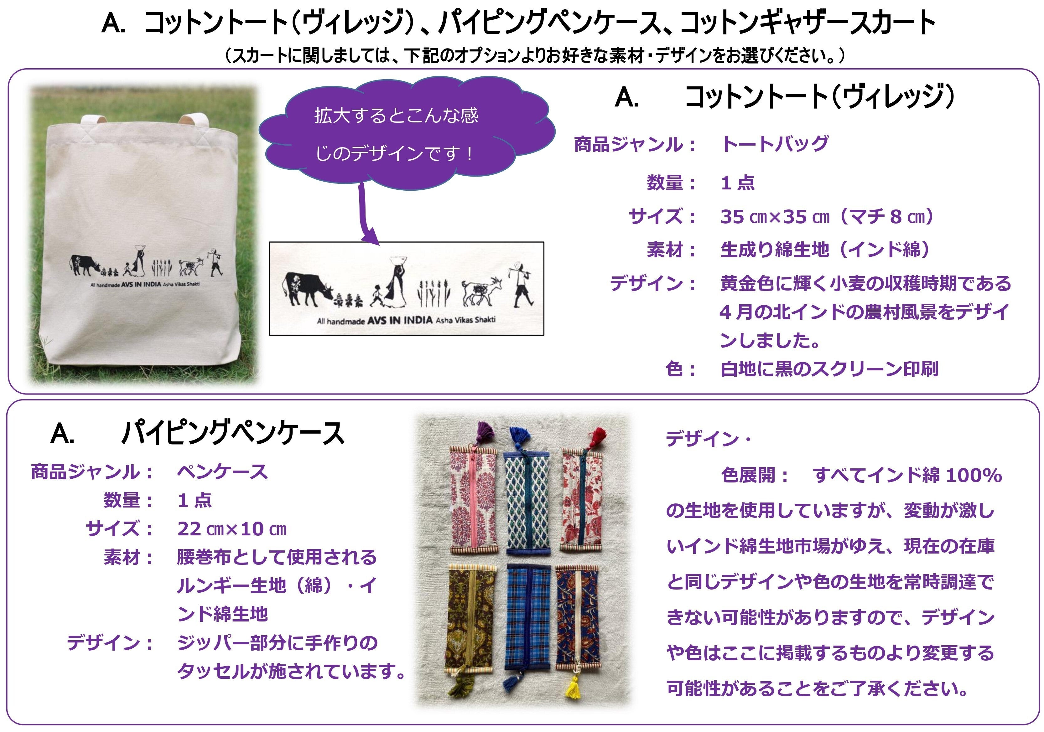 ③農村女性縫製団体(AVS)商品3点/コットンギャザースカート、コットントート(ヴィレッジ)、パイピングペンケース(以下参照)