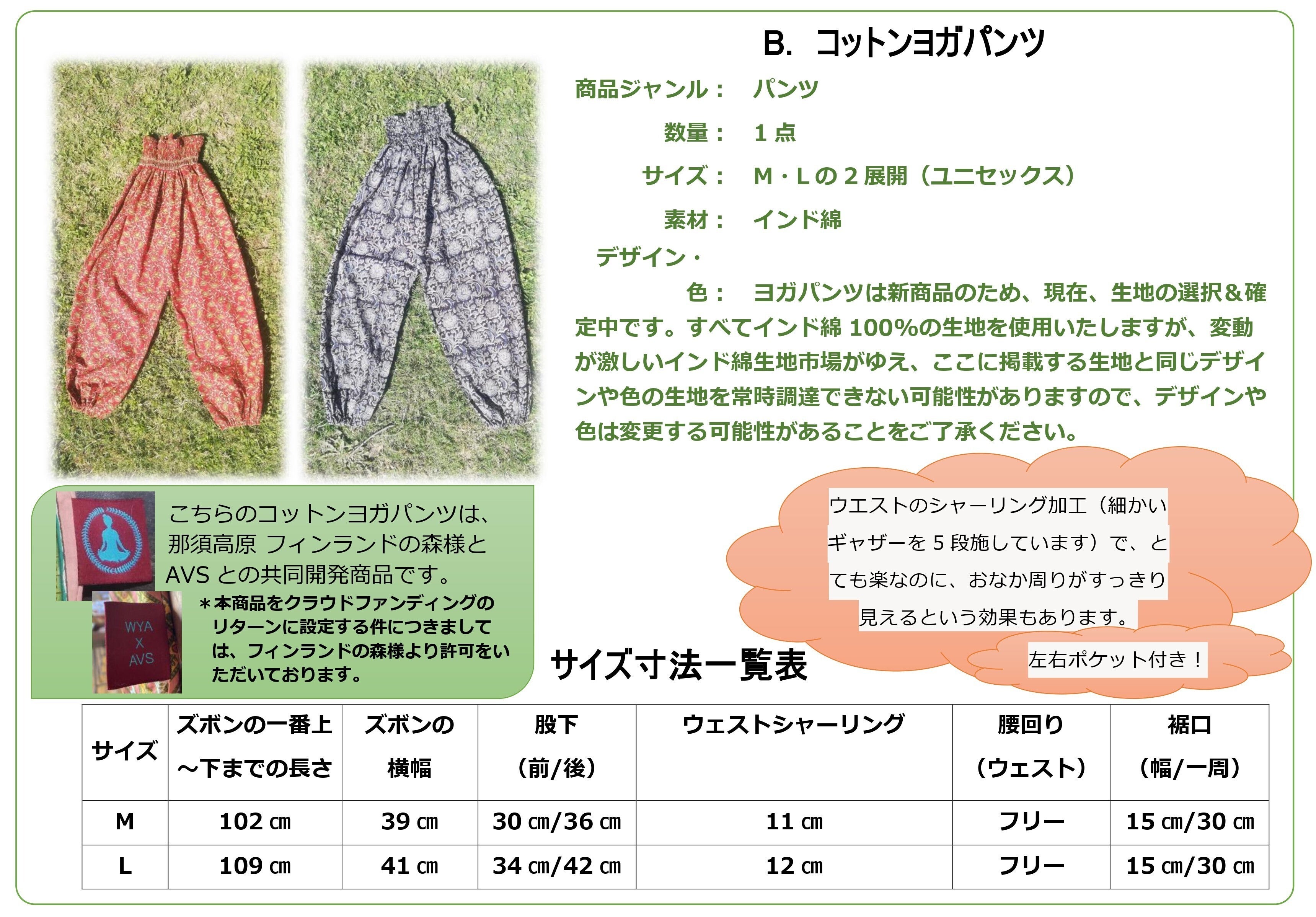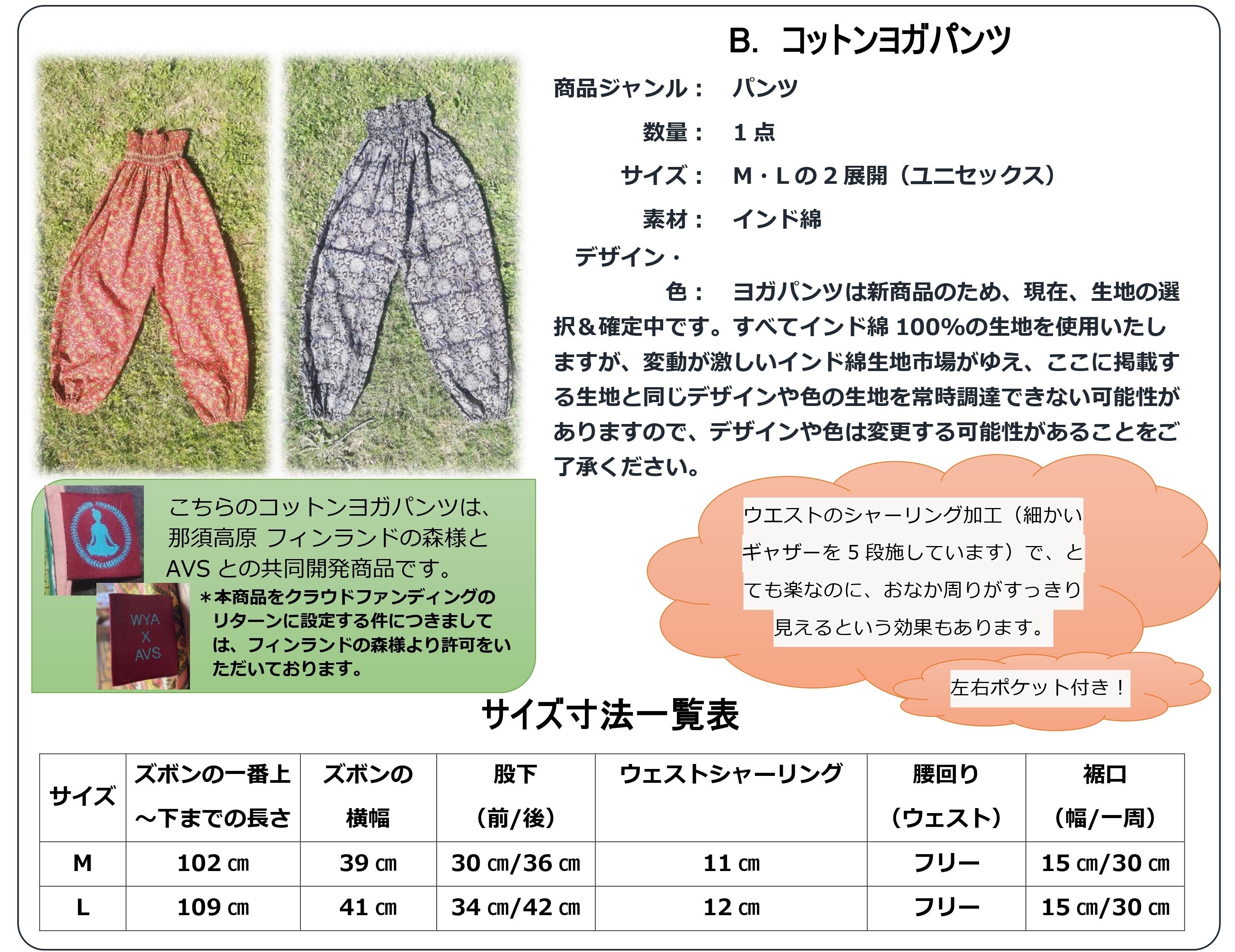 ③農村女性縫製団体(AVS)商品3点/ポケットトート、フラットケース、コットンヨガパンツ(以下参照)