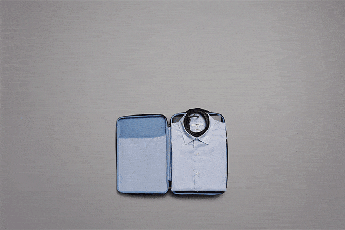 ガーメントボックスには、きっちり収納すれば、薄手のジャケットやシャツ、スラックスにソックスなど、スーツ一式をシワを減らしながら持ち運ぶことが可能です。