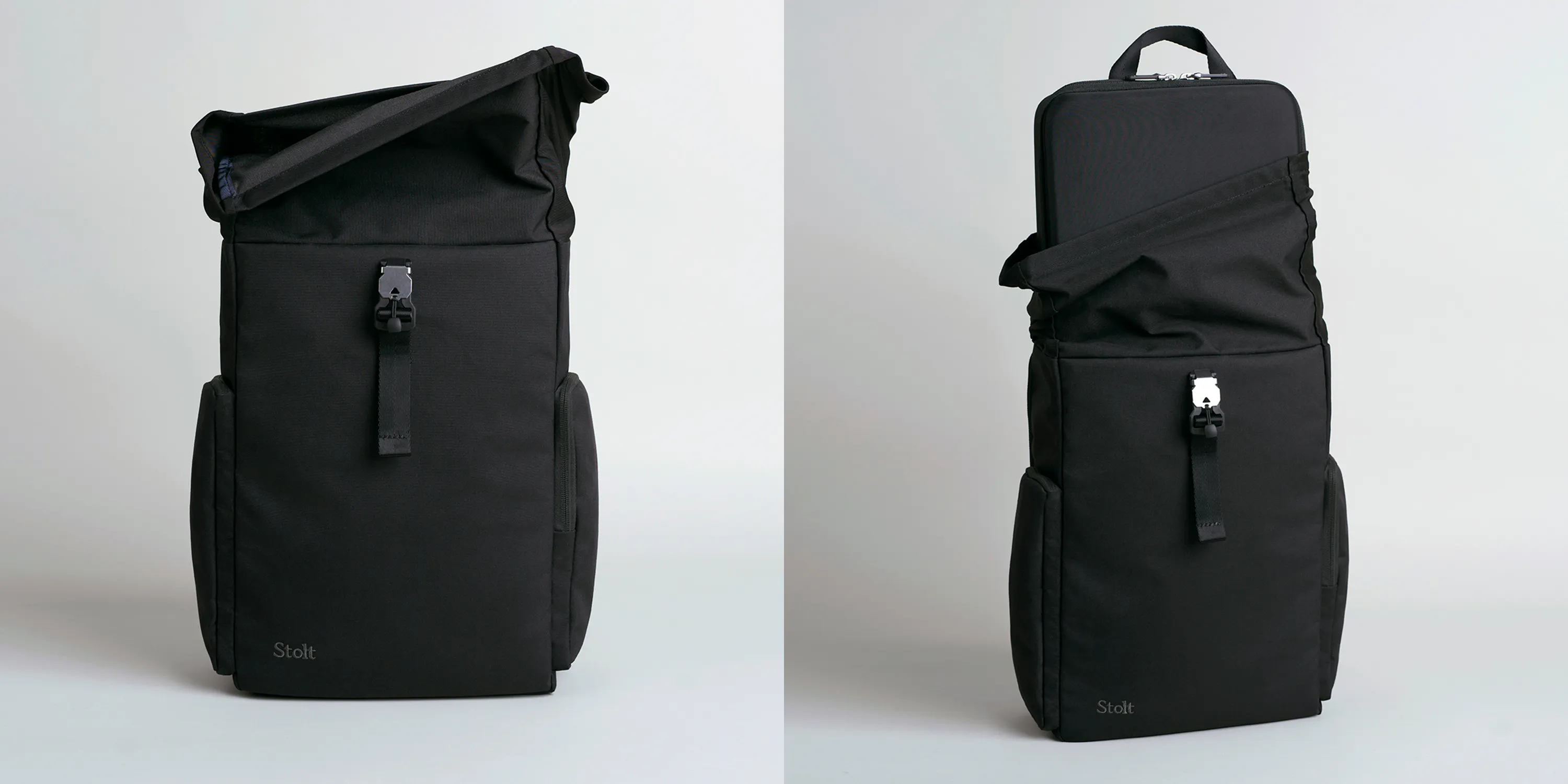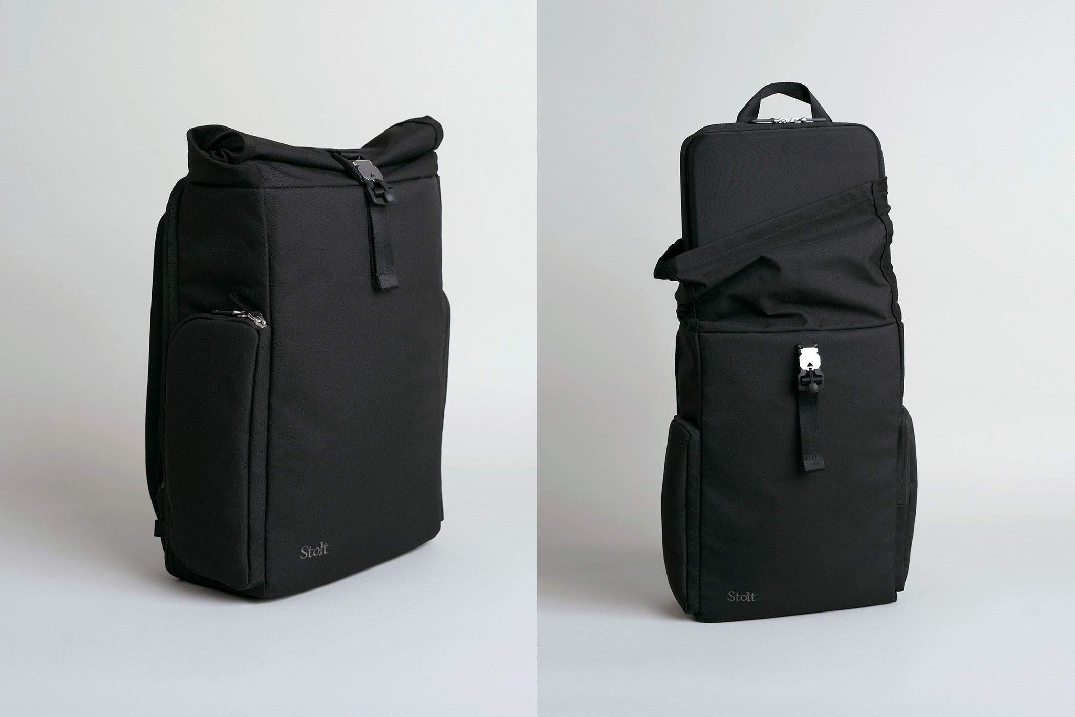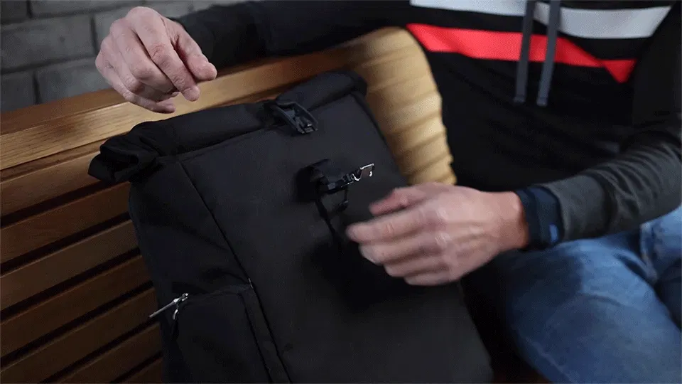 「Stolt Athlete」は、持ち物に応じて容量を拡張できるロールトップ式を採用しています。