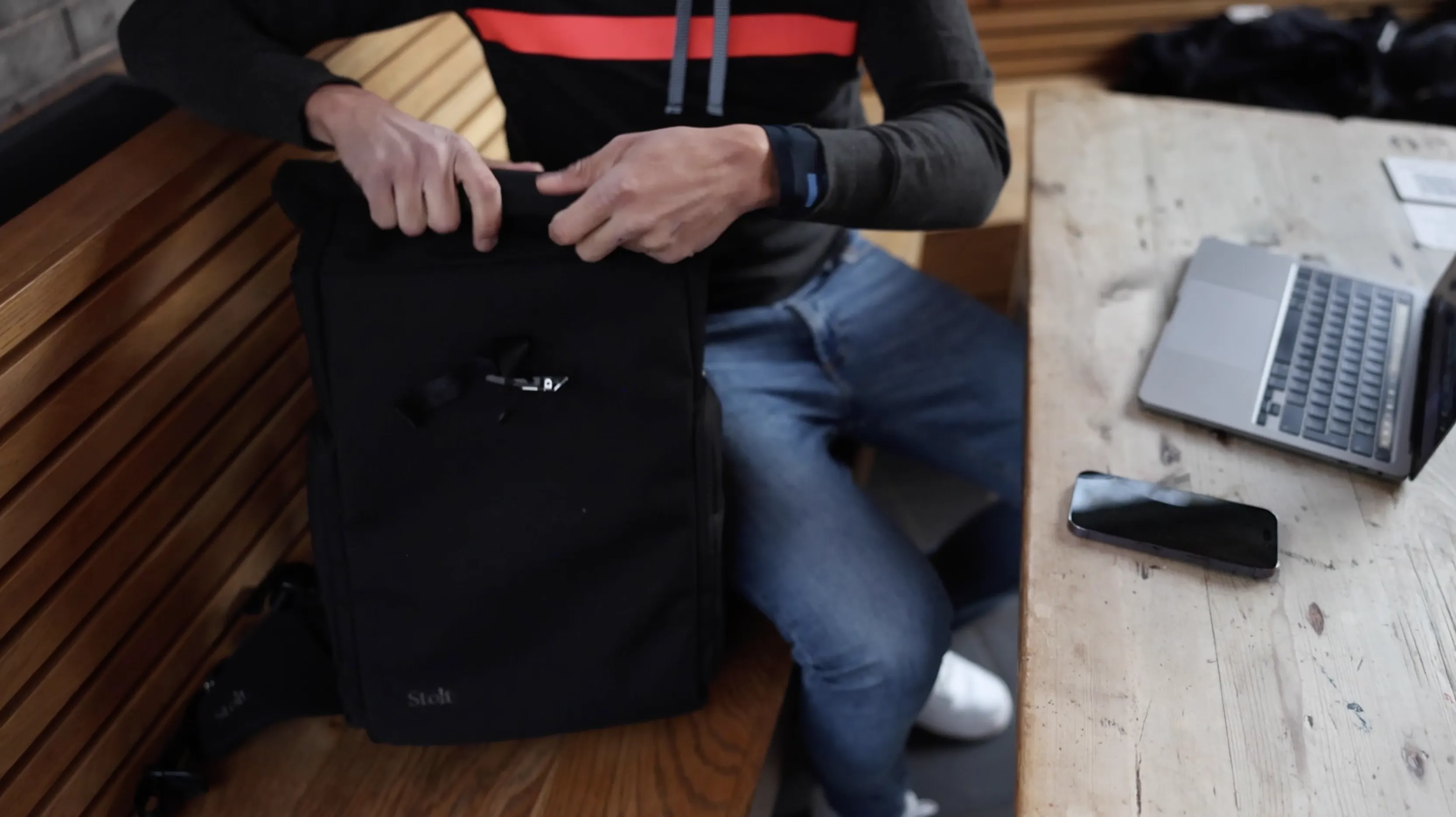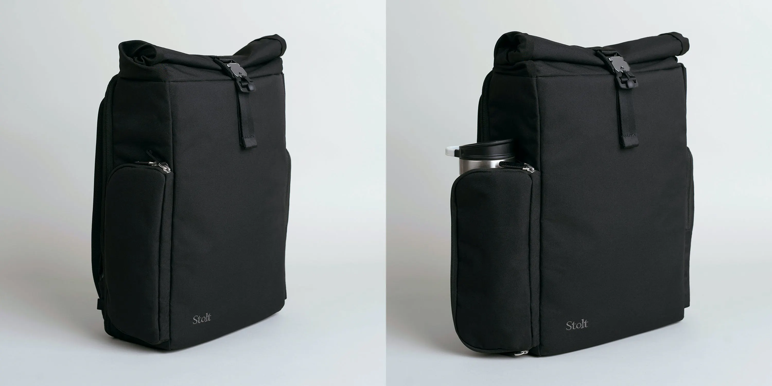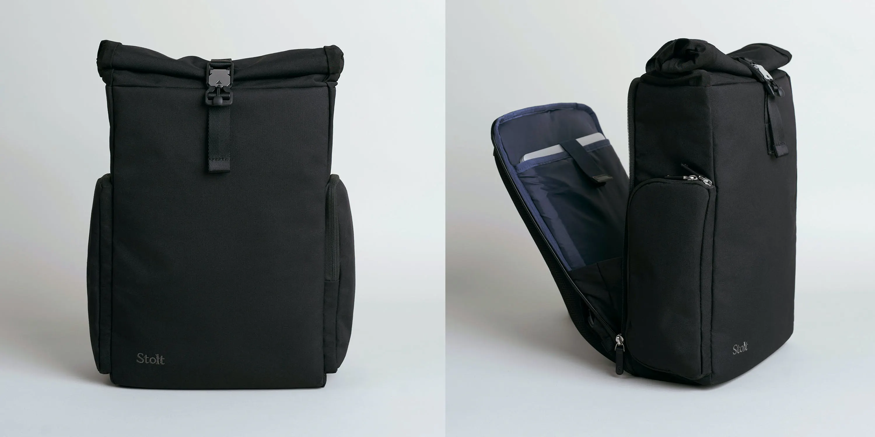 「Stolt Athlete」は、持ち物に応じて容量を拡張できるロールトップ式を採用しています。