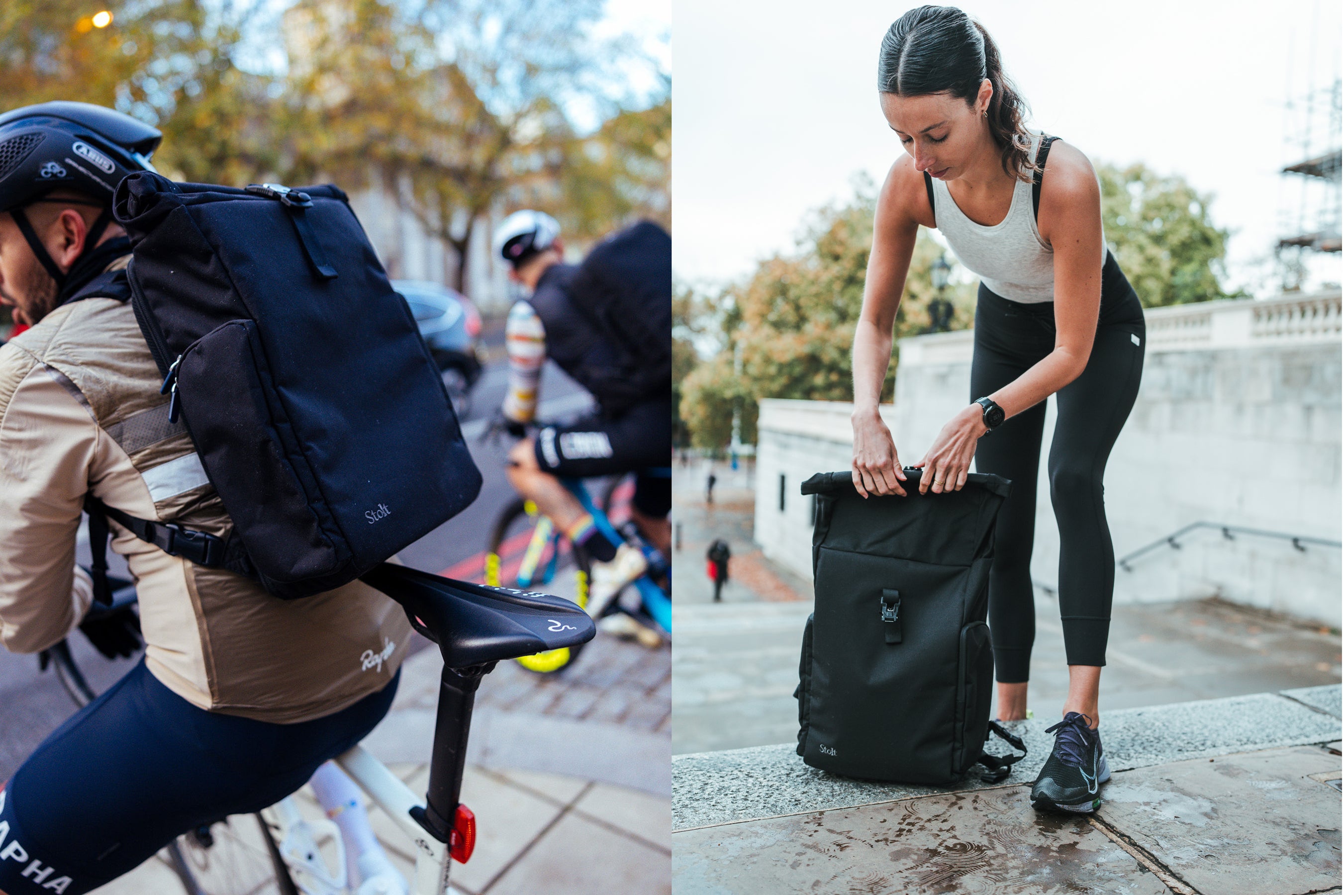イギリスの首都ロンドンは、オフィスや街中にシャワー付きの施設やジムがあり、自転車での通勤のほかに、通勤ランを行う人も多い都市です。Stoltは、そんなアクティブな通勤が根付いたロンドンのランナーやサイクリストに好評/人気のバックパックを世に送り出してきました。