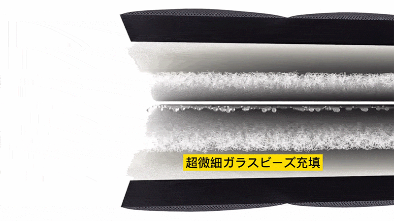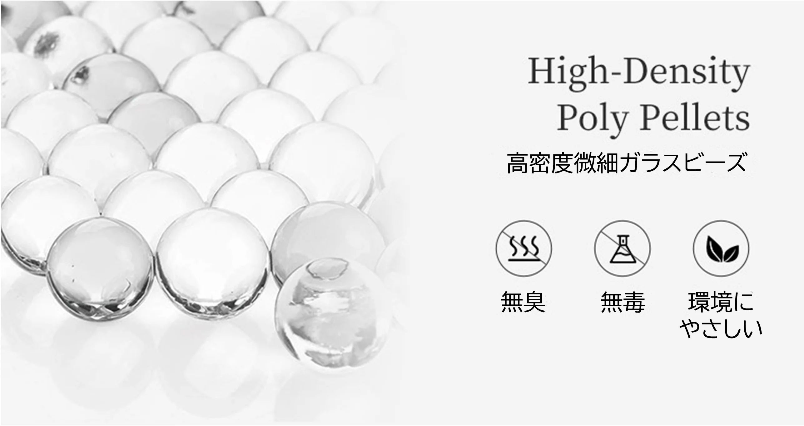 高密度微細ガラスビーズを使用することで体の各部位にもピッタリとフィットすることができ、より心地の良い感触と使い心地が可能です。