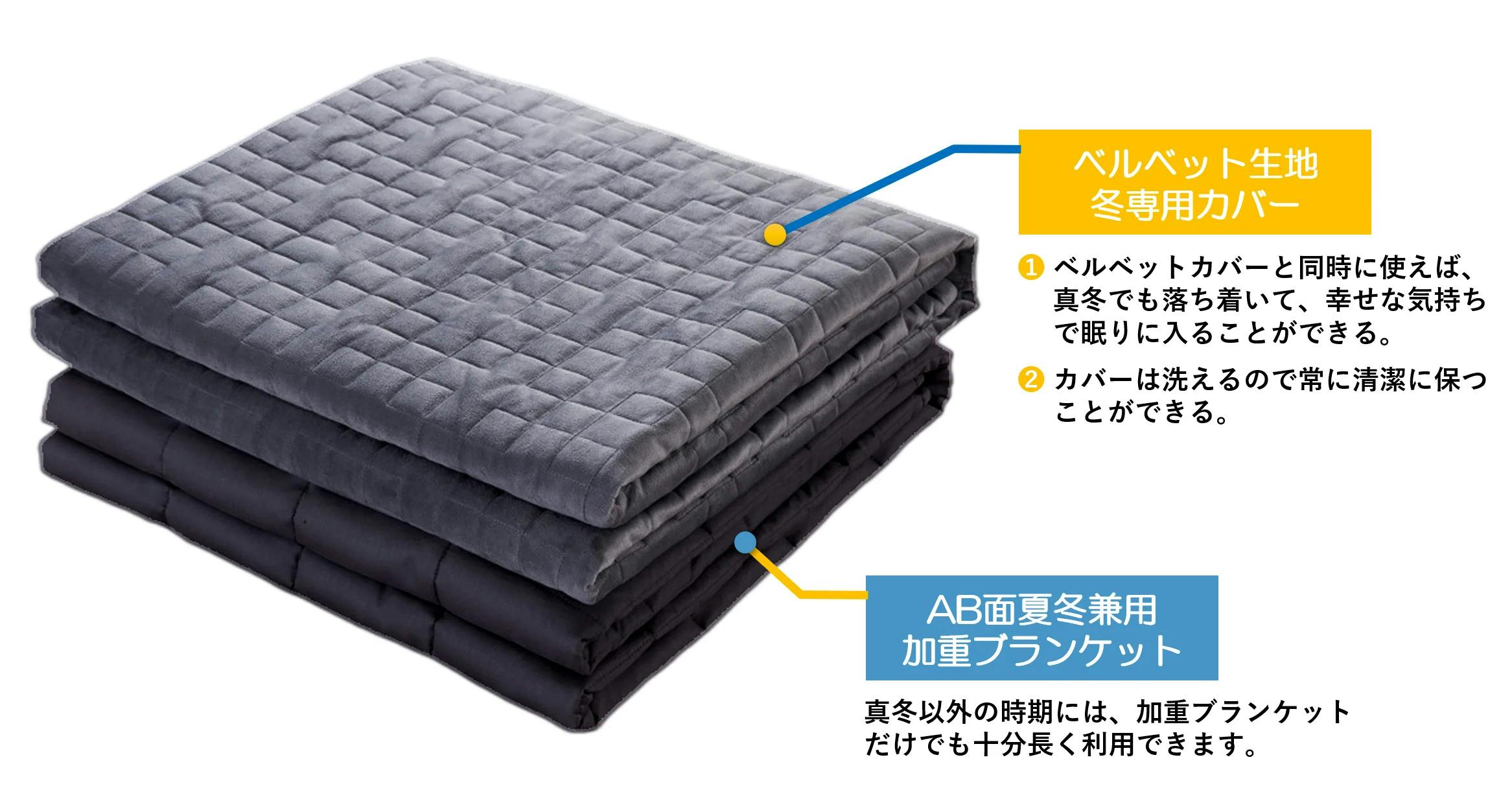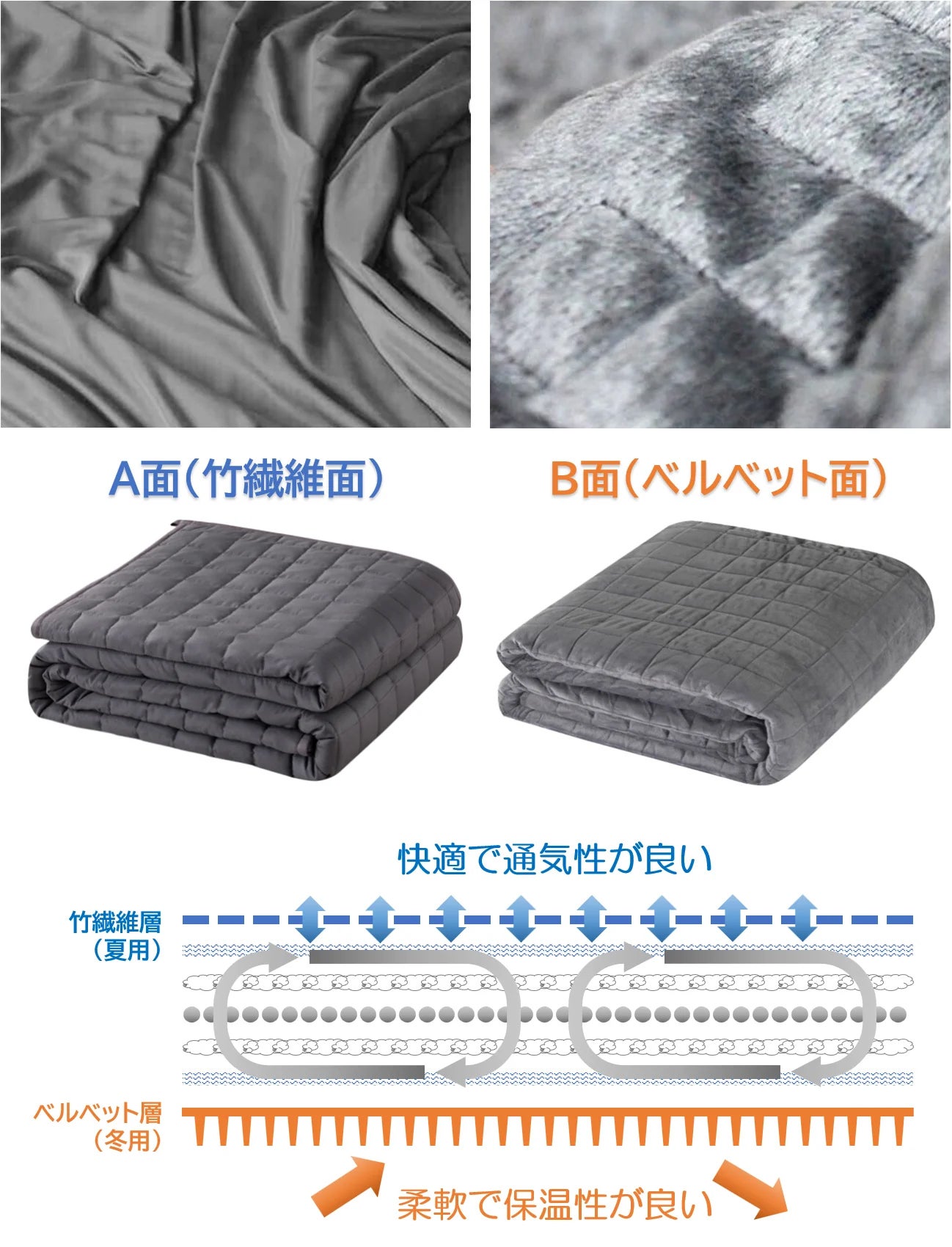 「DREAM HUG」加重ブランケットは、夏冬兼用のAB面デザインを採用しています。