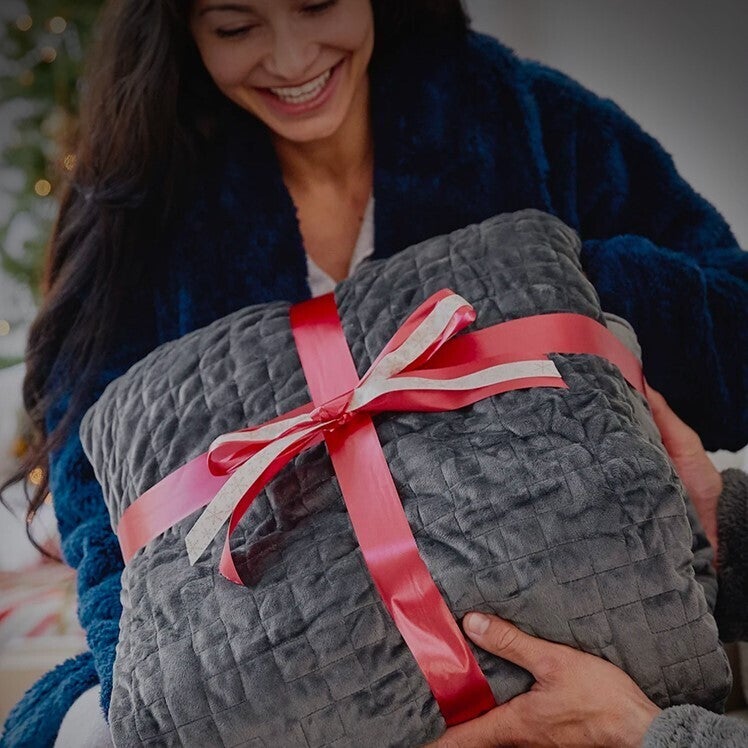 従来の加重ブランケットよりも、体の細かな形にあわせて適度に沈みこみ、しっかりと包み込まれている感覚が特徴です。