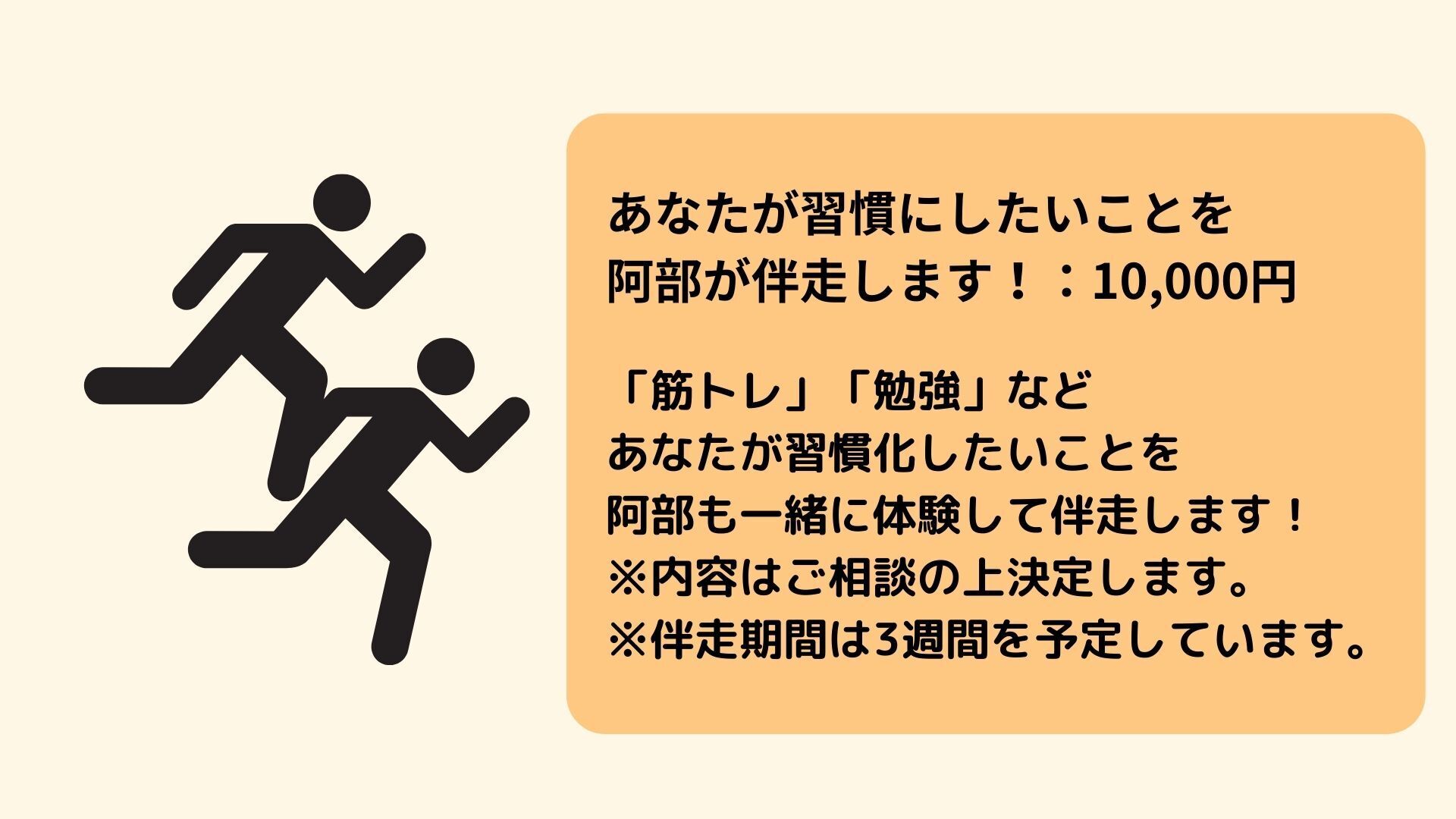 伴走のリターンはアプリの今後の重要な要素と考えている「継続」と「仲間感」をどうやったら生み出せるかを自分自身が支援いただいた方を伴走することで見出したいために設定しました。