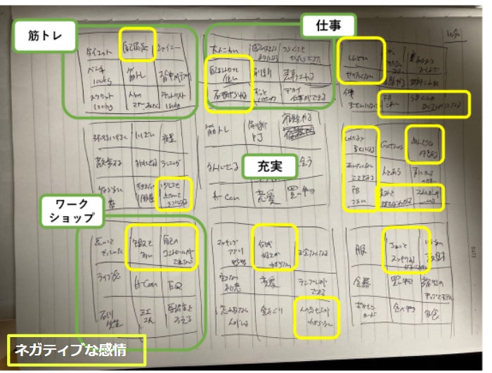 黄色く囲われた部分は自分の気持ち、特にモヤモヤとした感情達です。