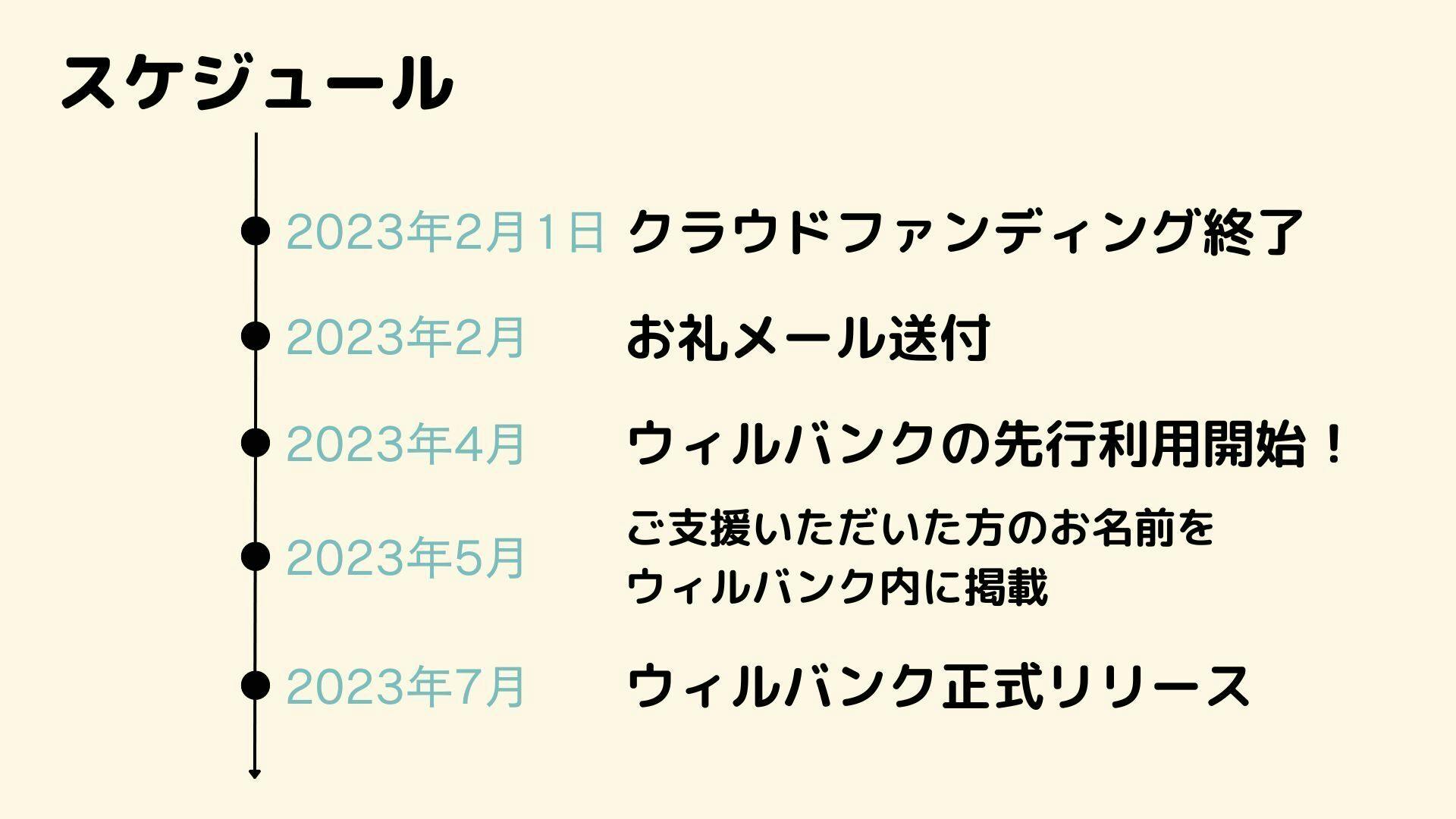 2023/02/03 00:00ウィルバンクにご支援、ご協力をいただいた皆様こんばんは!あべれんです。プロジェクト終了30分前にこのメッセージを書いております。1/21からスタートし、12日間のクラウドファンディングが終わろうとしており、あっという間なことにびっくりしています。20名の方、53,000円のご支援をいただき本当にありがたいなと感じています。またNextゴールとして設定していた「仲間集め」についても心理・技術の両面からご支援をいただける方が見つかり、本当にありがたいと感じています。Nextゴールとして設定していたオンラインパーティーについても準備を進めていきます!今後はウィルバンクの仲間の皆さんと開発を進め、順次リターンのお返しを行えればと思います。今後の開発状況についても活動報告を通して発信していきます!今後もよろしくお願いいたします! もっと見る