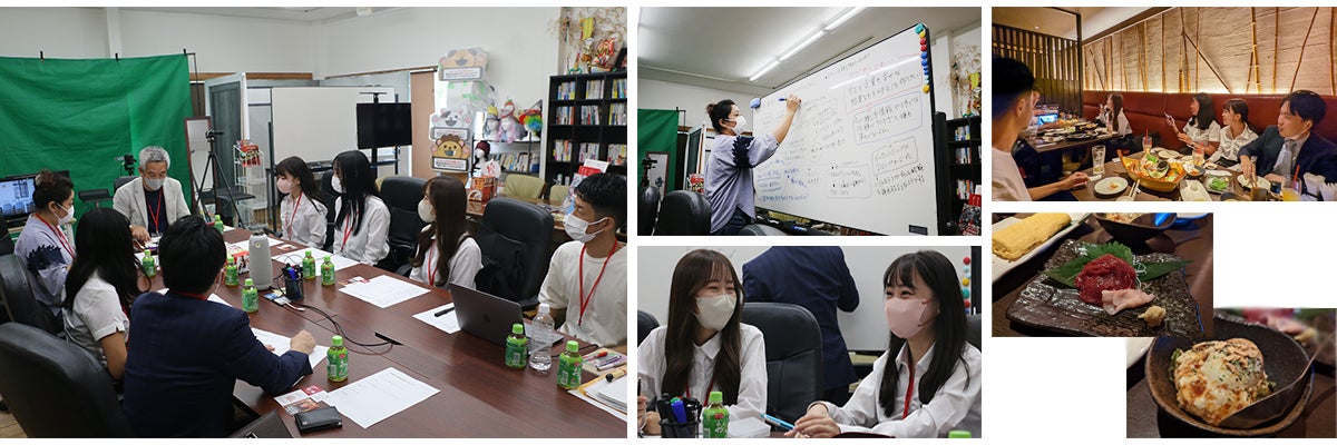 初回は、姫路にある弊社に大阪から学生チームと教授にお越しいただき顔合わせを兼ねたリアルミーティングを実施しました。この日は、互いに自己紹介をしたあと全員で出し合ったアイデアを投票した結果、架空会社「株式会社テン上げ」を設立(実在しない架空会社です!)し、社長や専務などの役職もくじ引きで決定したのちに、プロジェクト名も名付けました。