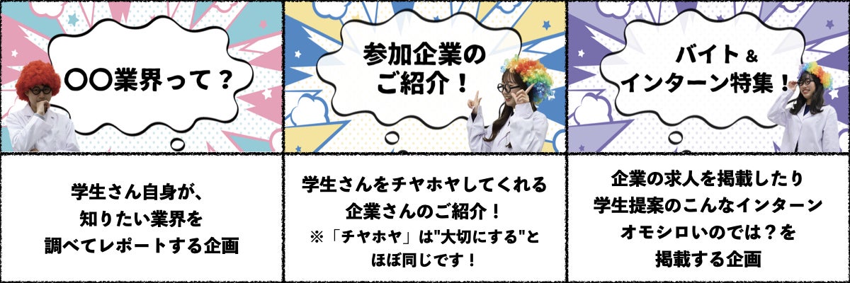 会社名の由来は、関わるすべての人が楽しく元気であって欲しい!テンションあげて頑張ろう!という気持ちで「テン上げ」と命名し、プロジェクト名に関してはプロジェクトで立ち上げる採用サイトにみんなで行って面白いコンテンツに触れながら就活チャンスを掴んでハッピーになってもらいたい!という想いから全員で名づけました。