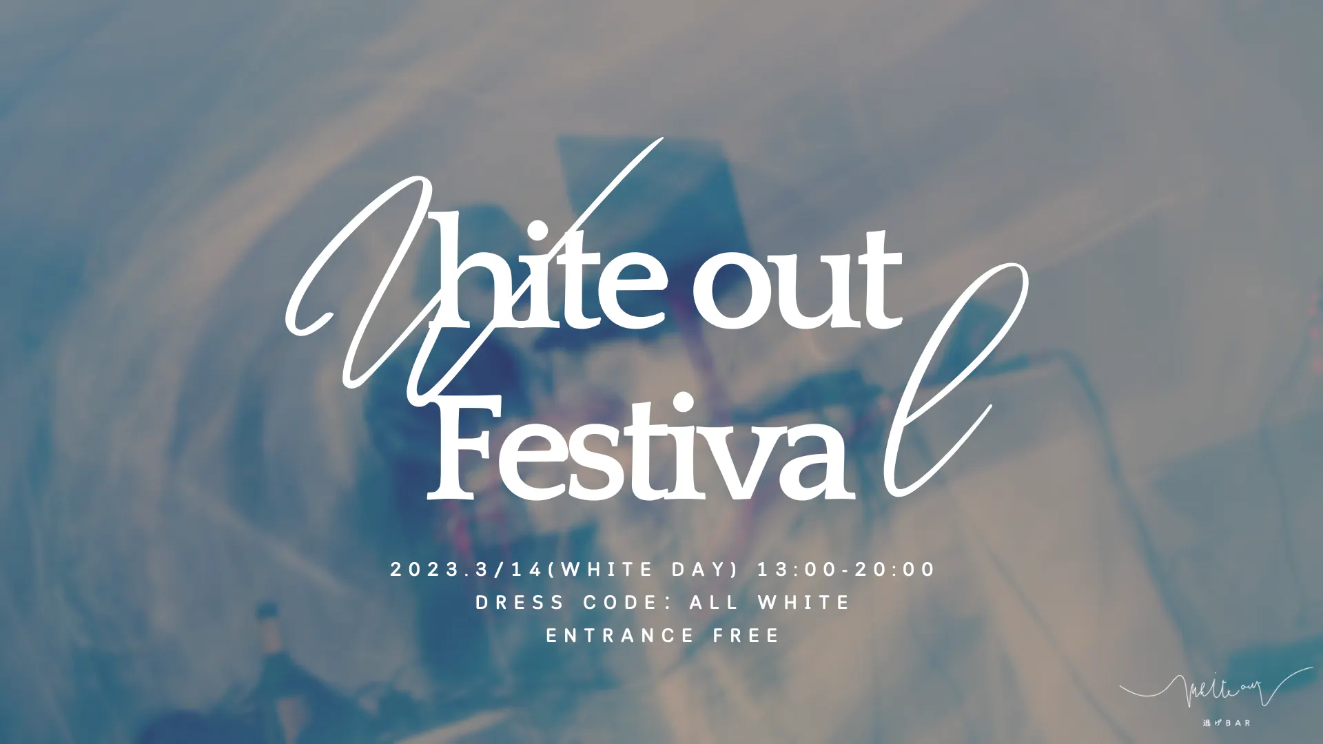 3/14のホワイトデーは毎年逃げBarで「White Out Festival」という白を祝い、白を祭る、音楽祭を催しています。今年はクラファン無事達成、!ということもあるので、入場無料で皆さんをご招待したいと思います:)