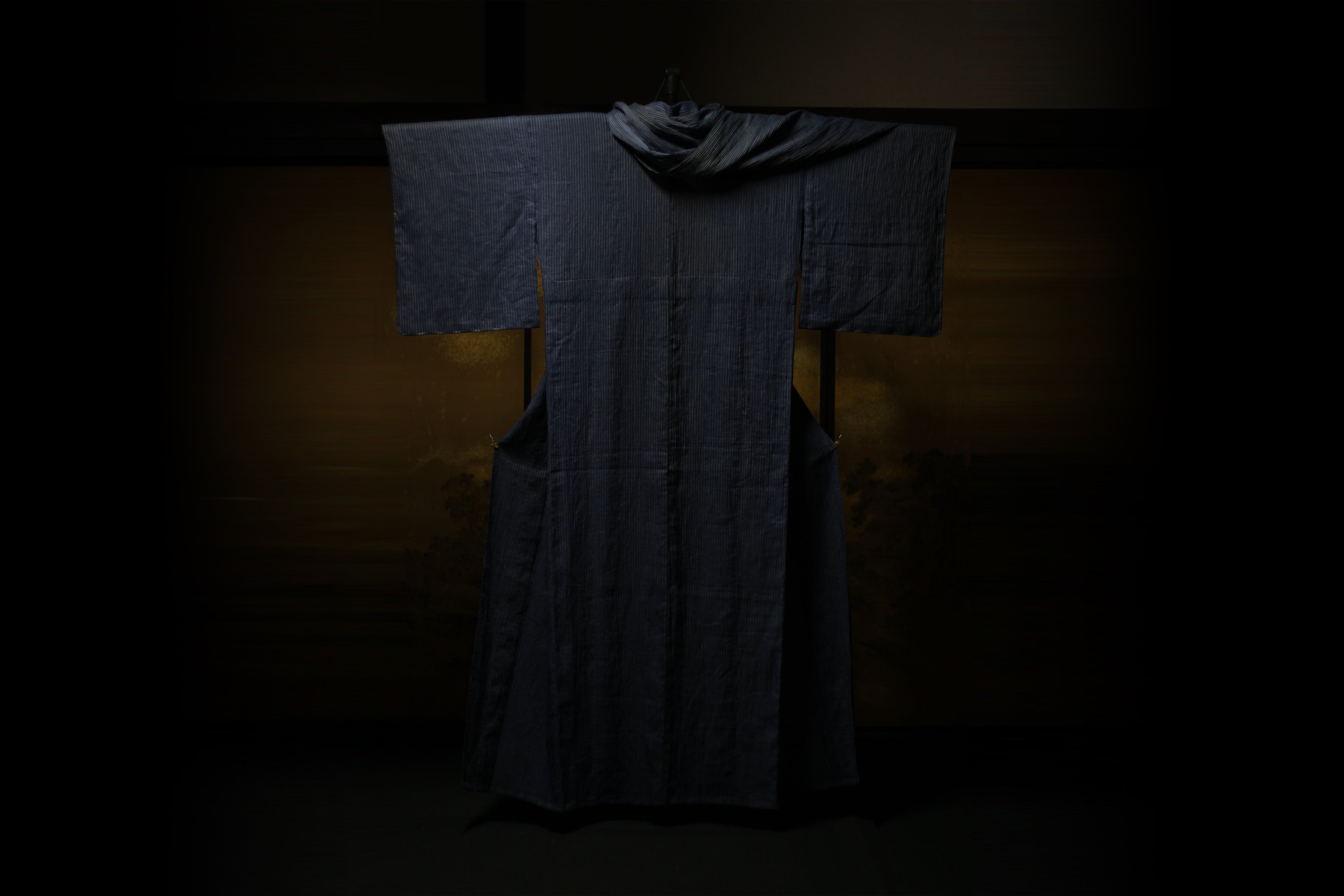「ストライプで出来ることはし尽くされた」私がこの仕事を始めた頃に、よく言われた言葉です。整経は外から見れば、布を作る上でのほんの些細でつまらない一工程なのかも知れませんが、いくら仕事を重ねても、私にはまだまだ底が見えません。もしもストライプの全てを知ることが出来て、1000本の経糸の布ならば、1000種の素材、1000種の太さ、1000種の色を自由にコントロールし切れたなら、一体どんな事が実現できるのかなと、たまに考えます。もしかすると、動物の皮膚や、雨や風、水の流れや炎のような自然の造形にも、少しは迫れるかも知れません。この「0.01」と言うプロダクトに取り組むにあたり、考えたことは「何故だかわからないけれど」と言う感覚についてです。世の中には理由はわからないけれど、どうにも心惹かれたり、逆に不快だったり、そんな機会が溢れています。実際にその正体が何なのかはわかりませんが、今回は、時間の経過や環境などによる、意識しないレベルの小さな変化や作用が影響していると仮定し、麻織物のストライプで、誰かの心に小さな引っ掛かりを生み出すことが出来ないかと考えました。それで、テーマとして取り上げたのが三日月の明かりでした。職人の、おそらくは理解を得られないような偏った挑戦や過剰なこだわり、そんなものでは恐らく誰も救えはしませんし、空腹も満たせません。「難しいことをすれば良いわけじゃ無い」とか「なんの意味があるのか」とも良く言われますし、理解もしているつもりです。けれど私は、そんな職人のエゴの塊のようなロマンチックなものが好きですし、もっとその先が見てみたいとも思います。個人的には、そんな仕事が許容される世の中なら素敵だなとも思うのですがー