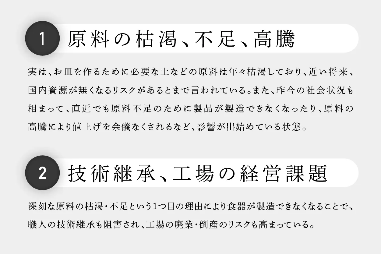 「器を通じた豊かな食文化の実現」と、「地域に根ざした世界に誇るものづくりを次世代に繋ぐ」ために立ち上がるこのプロジェクトを心から応援しております!