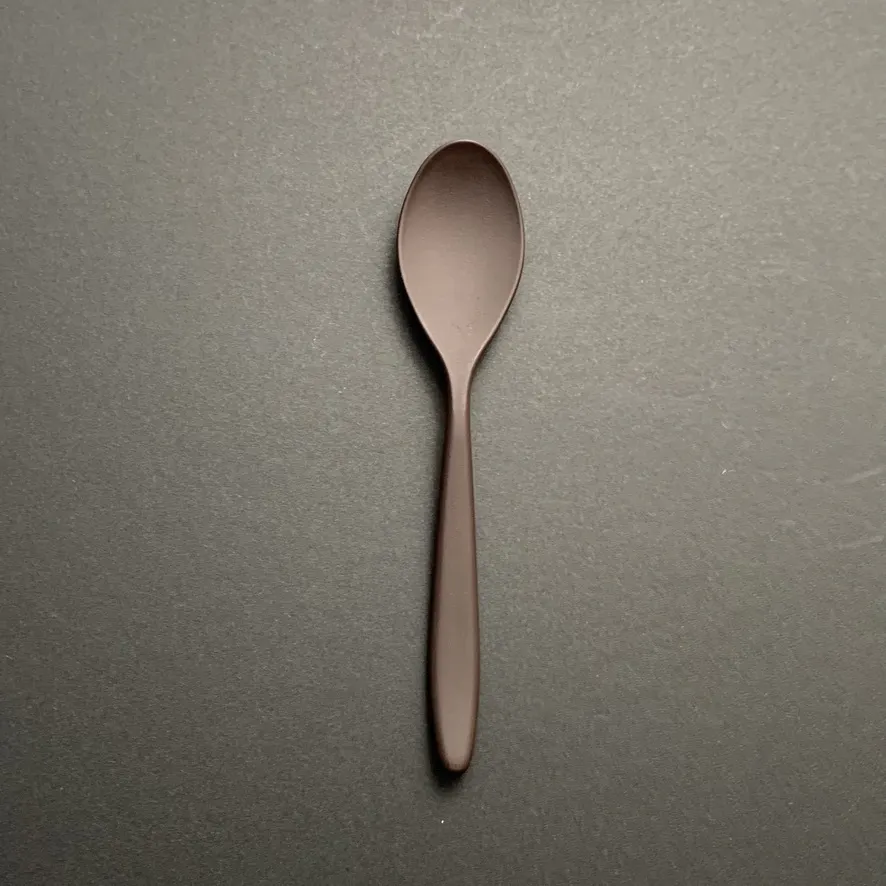 コーヒースプーンは、樹脂とコーヒー粉を使用した柔らかいタッチの製品で、木製スプーンのように温かみのある優しいデザインと、手になじむような感触と軽さが特徴です。