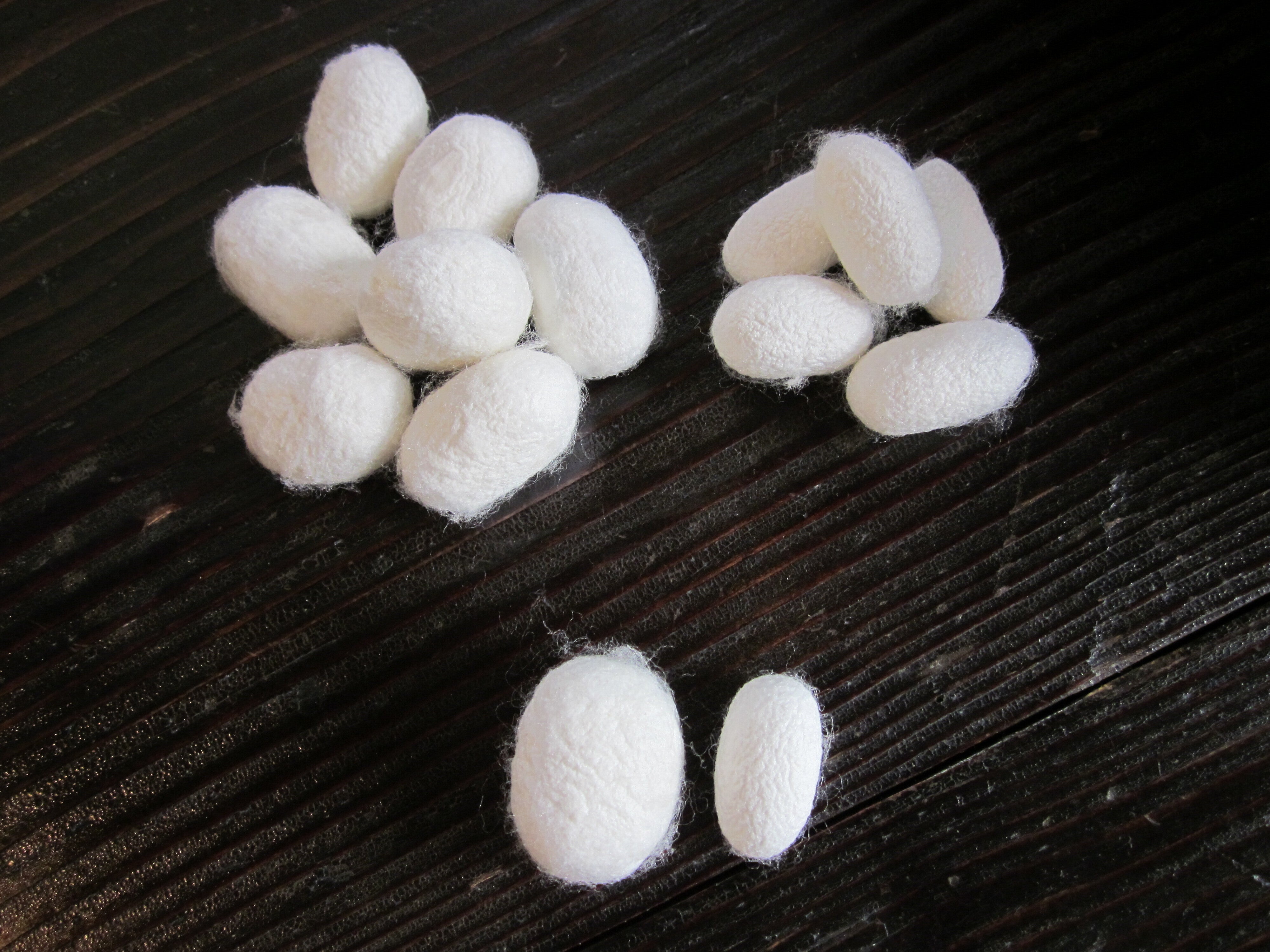 牛首紬の特徴は?と尋ねられて一番に答えるのは、「ヨコ糸に玉繭から挽いた糸を使っています!」というフレーズです。玉繭とは、2頭の蚕が共同で一個の繭にしたものを言います。この玉繭は、普通の養蚕をしているときの2~3%の偶然でしか生まれません。不思議なことに気の合った雄と雌しかこの玉繭を作らないと言われています。しかし、糸づくりの際に繭から2本の糸が出るため、糸をつくるときに必ず絡まって節となってしまい、きれいな糸が作れません。なので、繭としてはクズ繭扱いで売ることができませんでした。旧牛首村は日本でも有数の豪雪地帯。温暖化といわれる今日でも一晩に雪が1メートル積もることもあります。雪に閉ざされた冬に、村の女性たちは売れなかったクズ繭から糸を挽いて愛する家族のために着物を作っていたのです。牛首紬は現在でも伝統の技法でこの玉繭から糸を引き、織り上げています。特に玉糸づくりは職人の勘に頼る部分が大きく難しい作業となります。糸の絡み合った部分が牛首紬独特のネップとなり、牛首紬の独特の味となっています。今から10年ほど前になりますが、この玉繭のお話をふたりの若い女性にしたところ、「恋愛の御守りにしたいので玉繭が欲しい。」とお願いされ、熱心に説明を聞いてくれたお礼にそれぞれ一個の玉繭をプレゼントしました。それからちょうど1年後、そのときの女性2人が、「玉繭のお陰で、その後良い出会いがありふたりとも結婚が決まりました!」とわざわざ報告とお礼にきてくれました。こんなエピソードがあって出来上がったのが今回のリターンの一つとなっている「恋まゆ」です。牛首紬の小袋の中に玉繭をいれてあり、玉繭にあやかって良縁の御守りとなるよう願いを込めています。信ずるか信じないかはあなた次第です(笑)