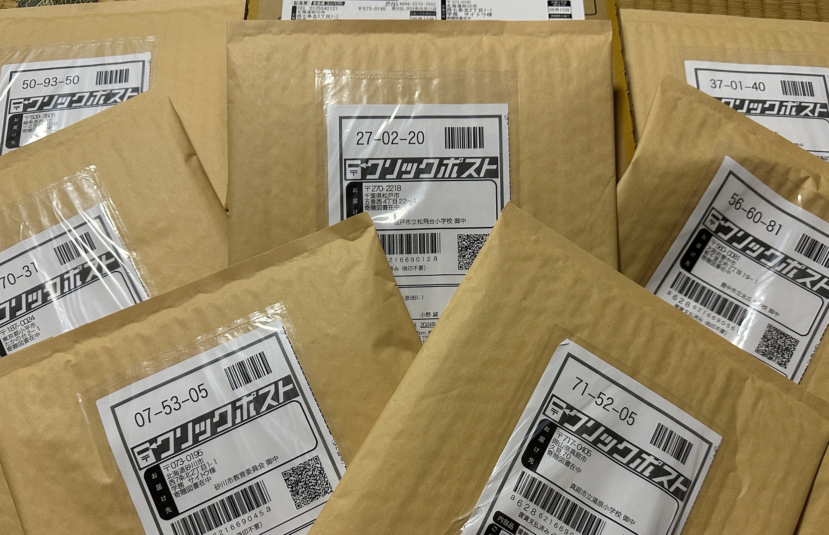 以下の図書館・学校に連絡をさせていただき、発送が完了しました!