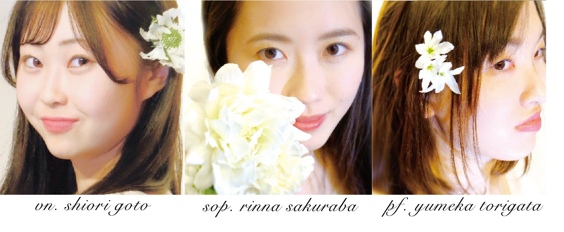 出演:櫻庭 凜奈 ソプラノ ・ 後藤 紫織 ヴァイオリン ・ 鳥潟 夢桜 ピアノ