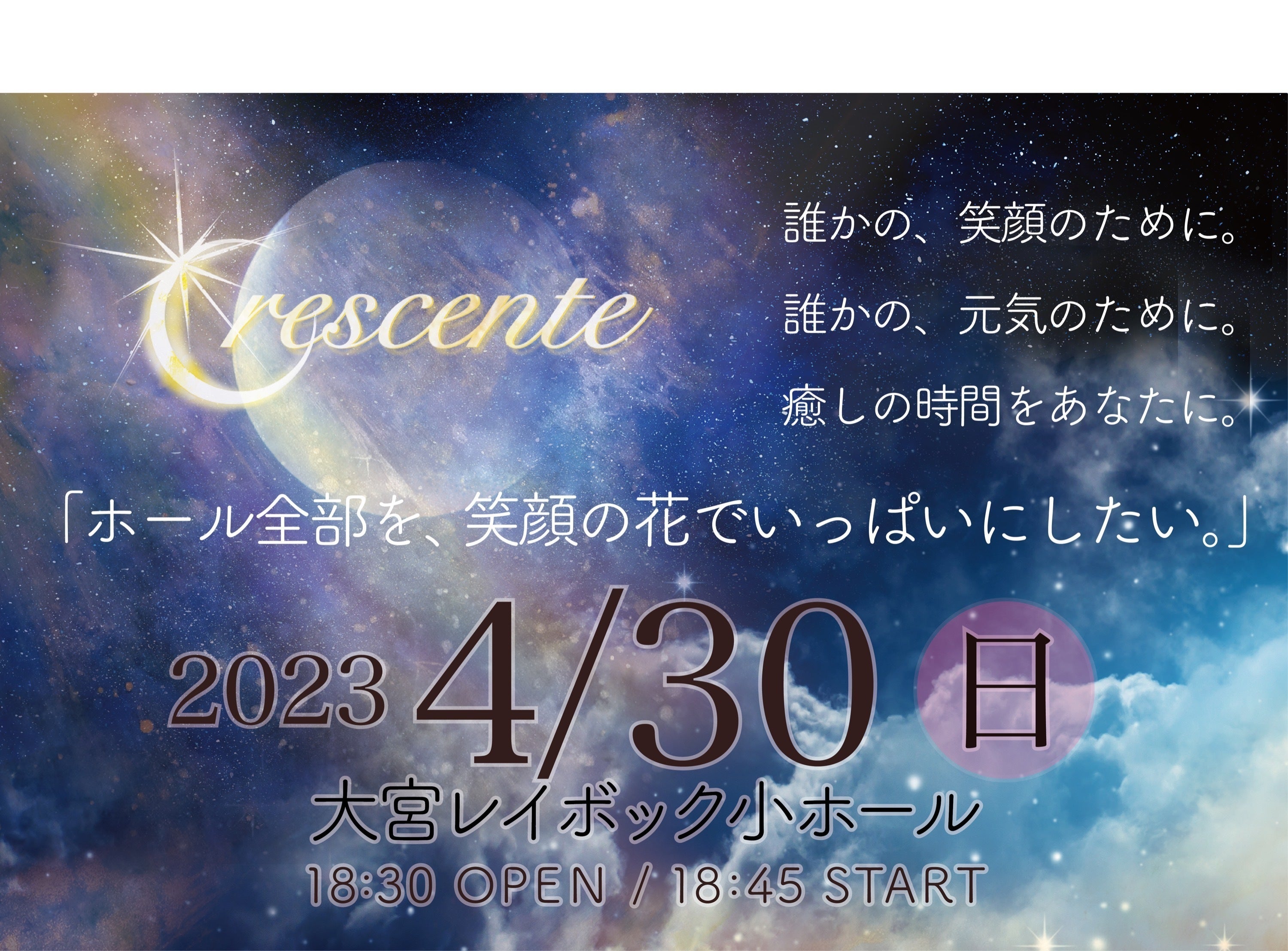 集めた支援金は2023年4/30に開催される、「Crescente クレシェンテコンサート VOL.1」の運営費に使用させていただきます。