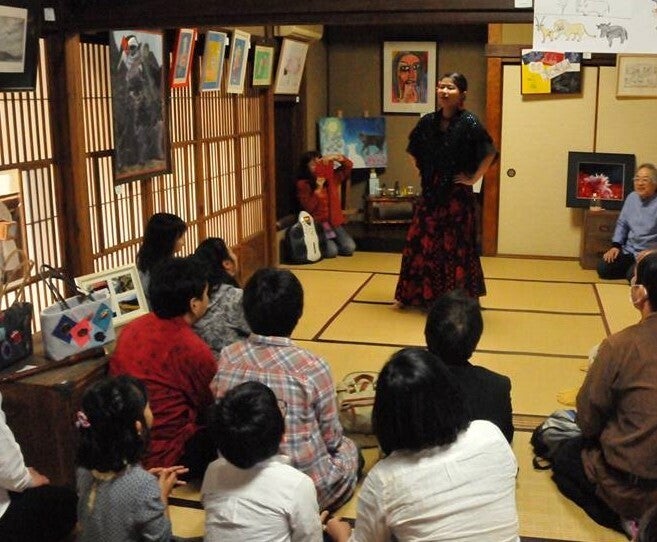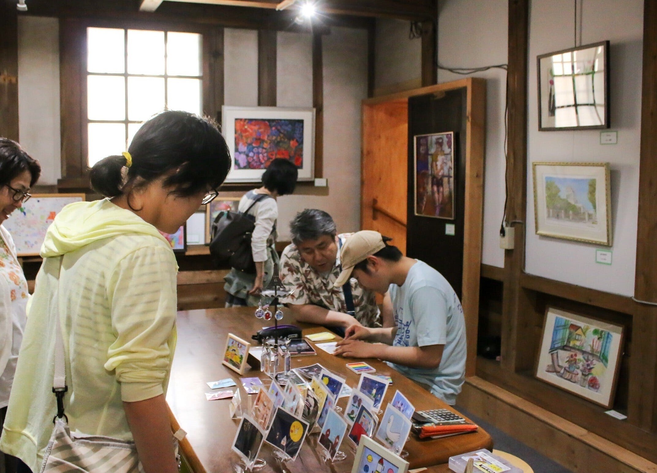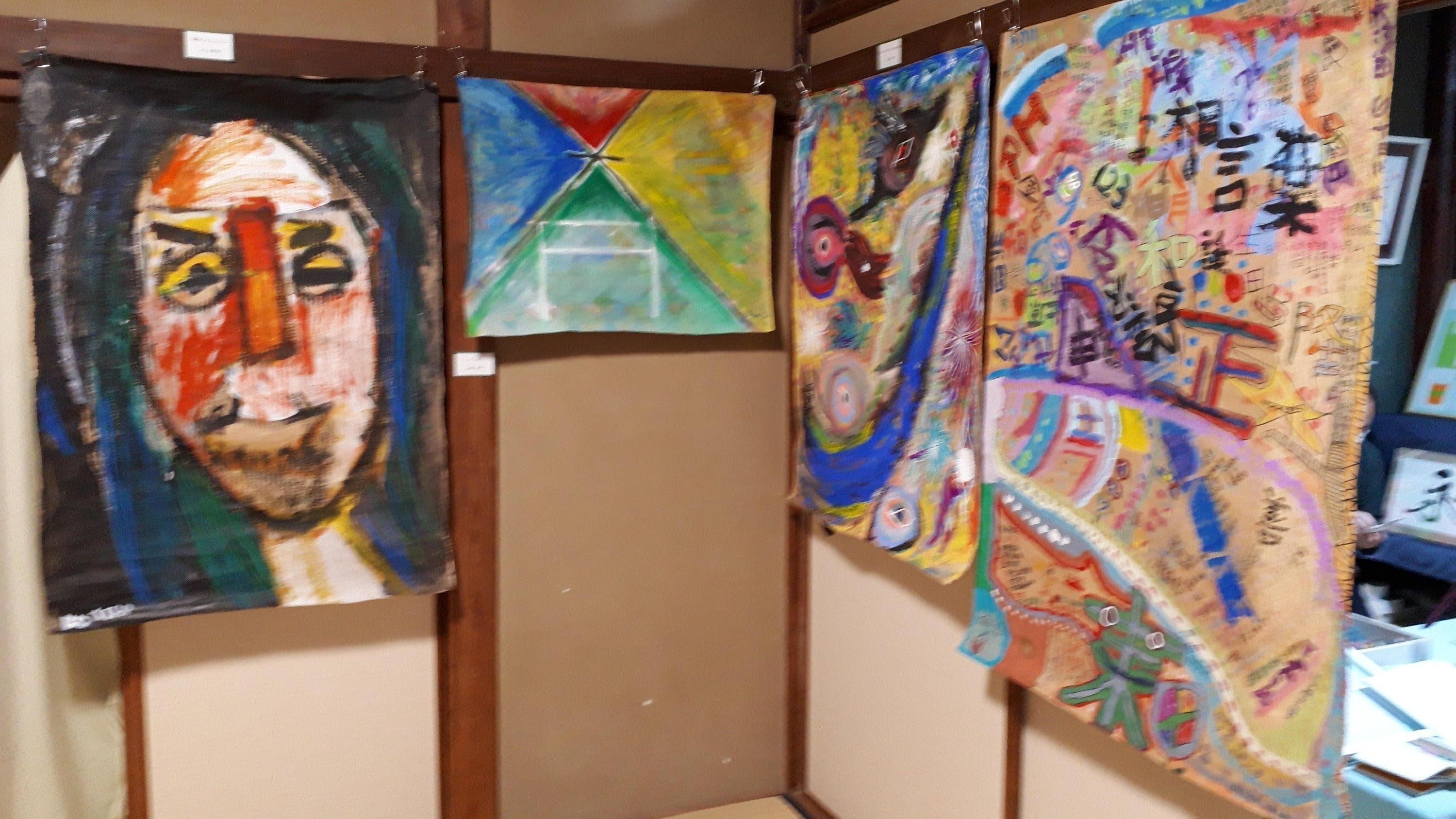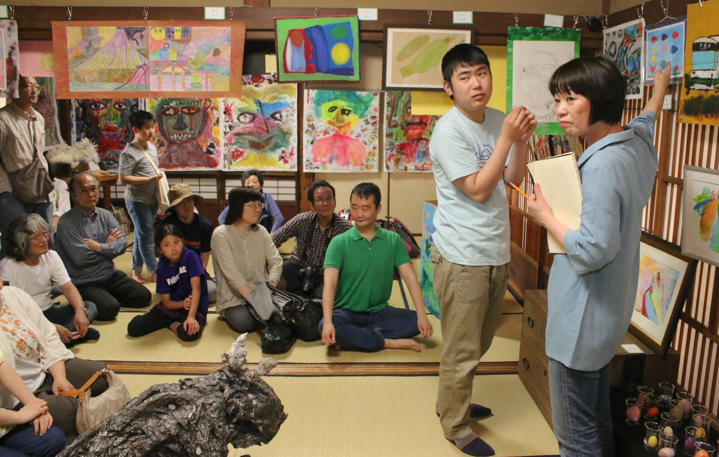 藤沢駅近くにある蔵まえギャラリーという町家を利用した会場は、障がいのある方も畳や蔵でゆったりと過ごされ、支援者や保護者の方も一緒に出品したり、ここでの雰囲気を楽しんでくださっています。障がいのある方が人前で自分の作品について語ったり、販売したりする姿を見て保護者の方は大変喜んでいられ、この場の大切さを実感されています。来場される方々は鑑賞だけでなく、似顔絵やアートバザールなどのいろいろなイベントで作家との交流をはかり、Vividな作品から魂に触れる感動を呼び起こされ、自分自身も参加しよう表現しようという思いを抱かれています。