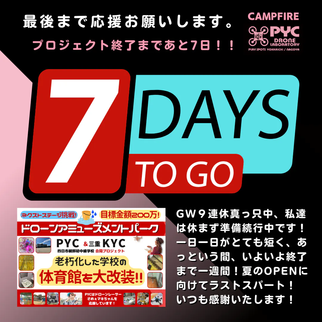 GWムードの中、本プロジェクトも残り7日となりました。