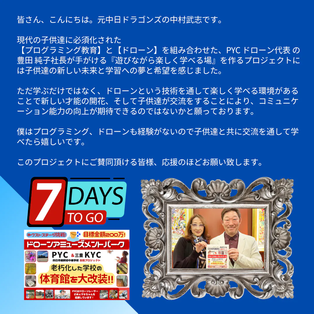 PYC ドローン代表 の 豊田 純子社長が手がける『遊びながら楽しく学べる場』を作るプロジェクトには子供達の新しい未来と学習への夢と希望を感じました。