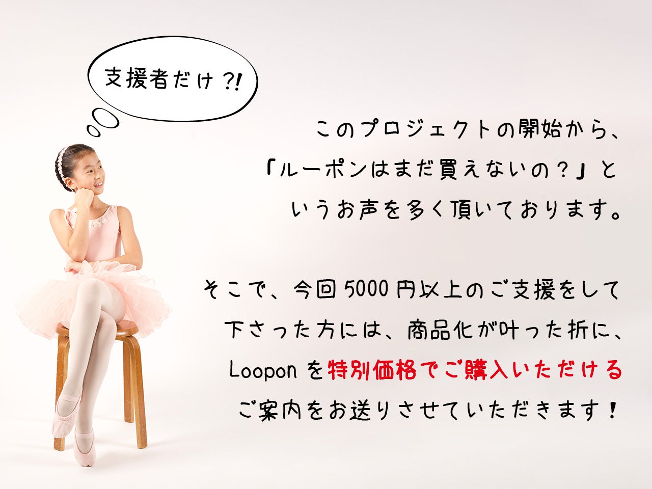 このLooponという商品が実際に販売までこぎつけるには、まだいくつかの難所を乗り越えなければなりませんが、それでも私は負けずに研究開発を続けていくつもりです! そしてLooponだけではなく、自社の既存ビジネスである舞台芸術も、もっと多くの人に知ってもらい、いつかは『バレエ新時代を創る』という頂きを目指していきたいと思っています。