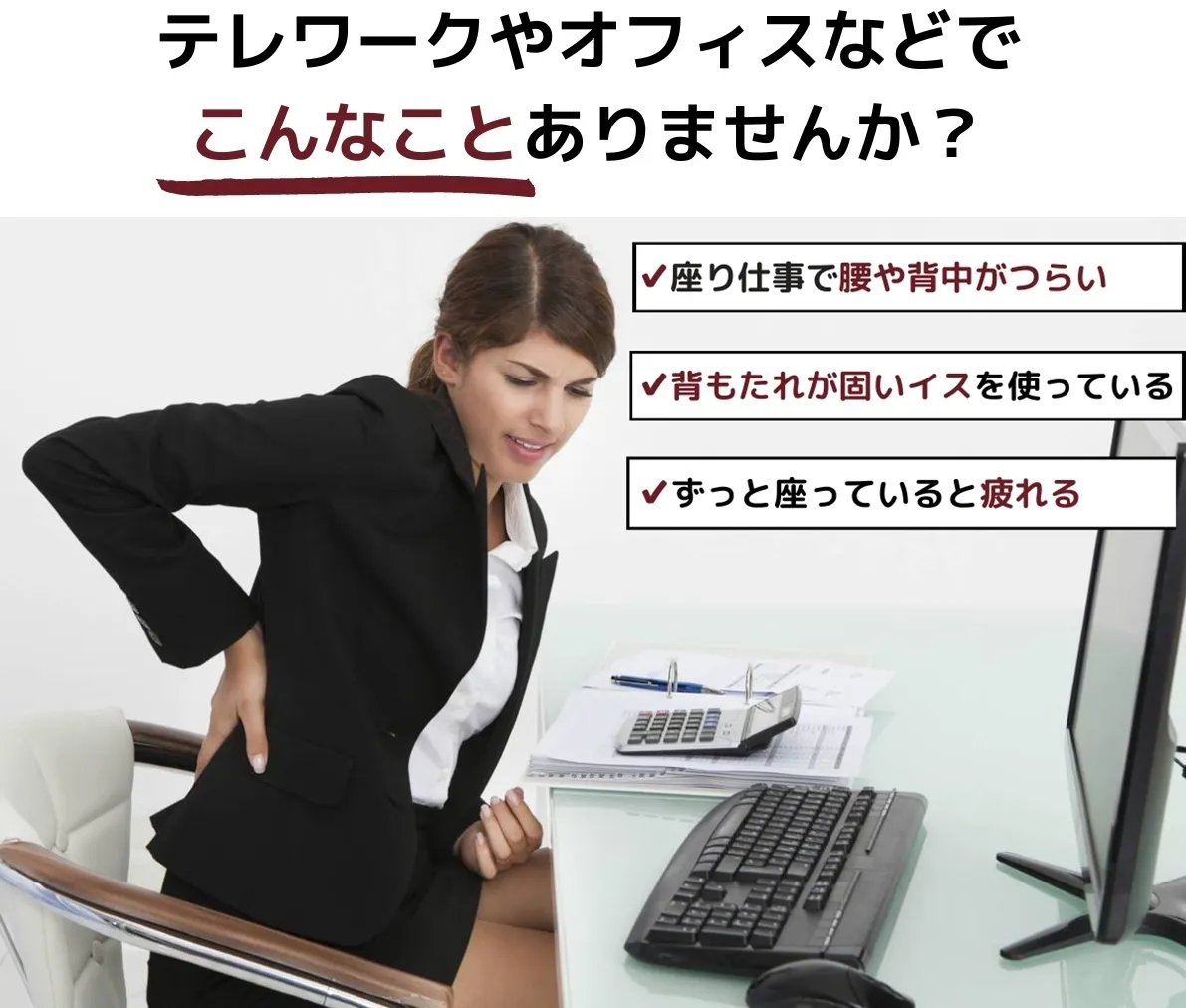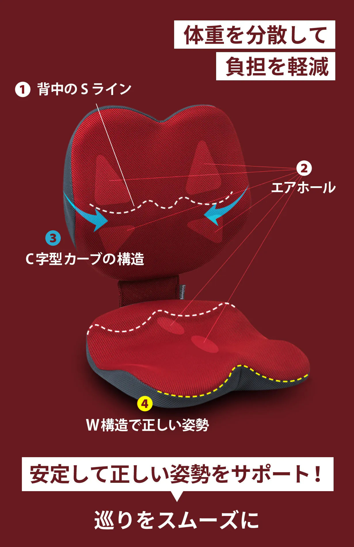 どんな場所でも正しい姿勢をサポートし、効率向上をお手伝いする機能性クッション。